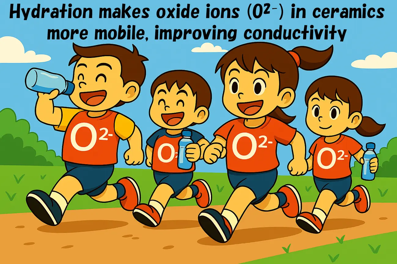 Hydration significantly boosts ion conductivity in Ba7Nb4MoO20, a promising ceramic electrolyte candidate for low-temperature solid oxide fuel cells. But its origin and mobile ionic species were unresolved issues. Researchers at Institute of Science Tokyo found that exposure to water vapor enhances oxide-ion mobility by increasing interstitial oxygen ions, nearly doubling the oxide-ion conductivity at 500 °C. The findings of this study could advance the development of efficient and durable fuel cells for clean energy applications.