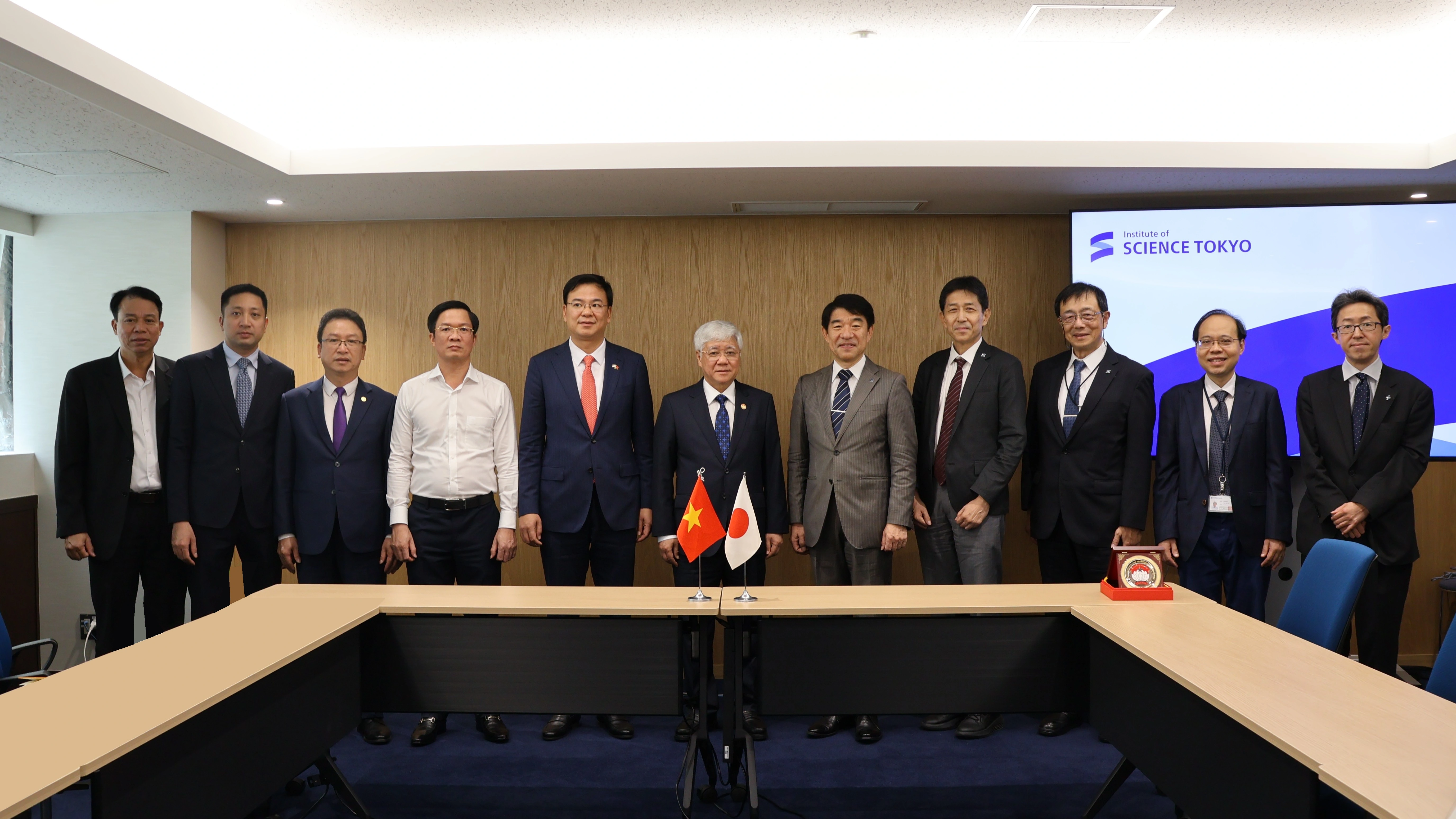 On July 29, a delegation of 15 members from the Vietnamese government, led by H.E. Mr. Do Van Chien (Member of the Politburo; Secretary of the Party Central Committee; President of the Central Committee of the Viet Nam Fatherland Front) and H.E. Mr. Pham Quang Hieu (Ambassador Extraordinary and Plenipotentiary of Viet Nam to Japan), visited Science Tokyo. They held a meeting with Dr. Naoto Ohtake (President and CEO), Prof. Tomohiro Morio (Executive Vice President for Global Affairs), and Prof. Jun-ichi Takada (Executive Vice President for Global Affairs), where they engaged in an exchange of views. Following the discussion, the delegation visited the laboratory of Prof. Pham Nam Hai at the School of Engineering, interacted with students, and observed the research environment.