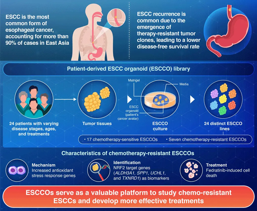 - An organoid library of human esophageal squamous cell carcinomas (ESCCs) uncovers the chemotherapy-resistant ESCC features