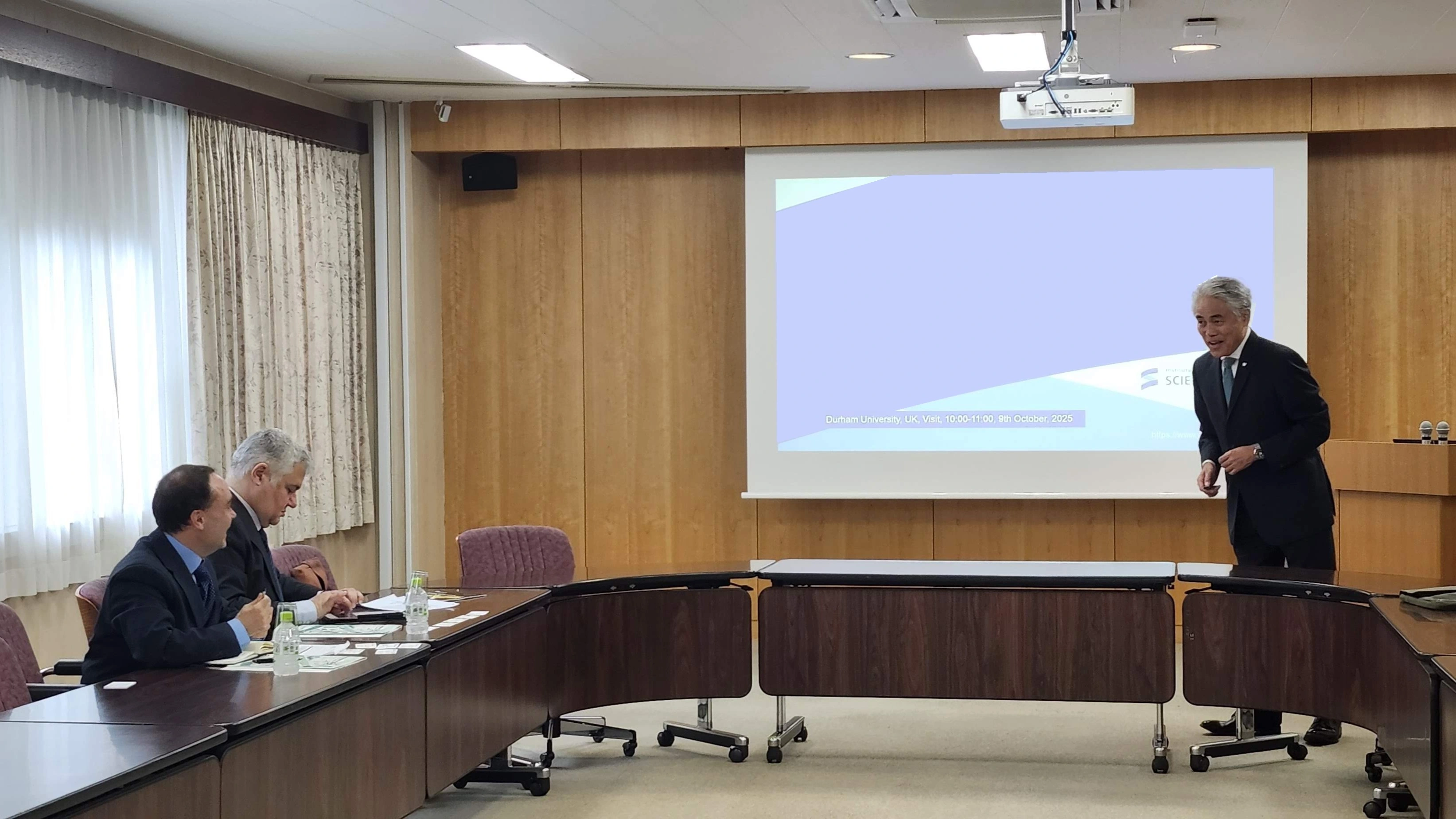 On October 9, Prof. Clive Roberts, Executive Dean (Science) of Durham University, UK, and his colleague visited Science Tokyo. During the visit, they introduced their university and exchanged information on international collaboration activities and discussed potential collaborations with Executive Vice President for Global Affairs Jun-ichi Takada and Vice President for International Strategy and Internationalization Patrick Foss. The visit also included a laboratory tour.