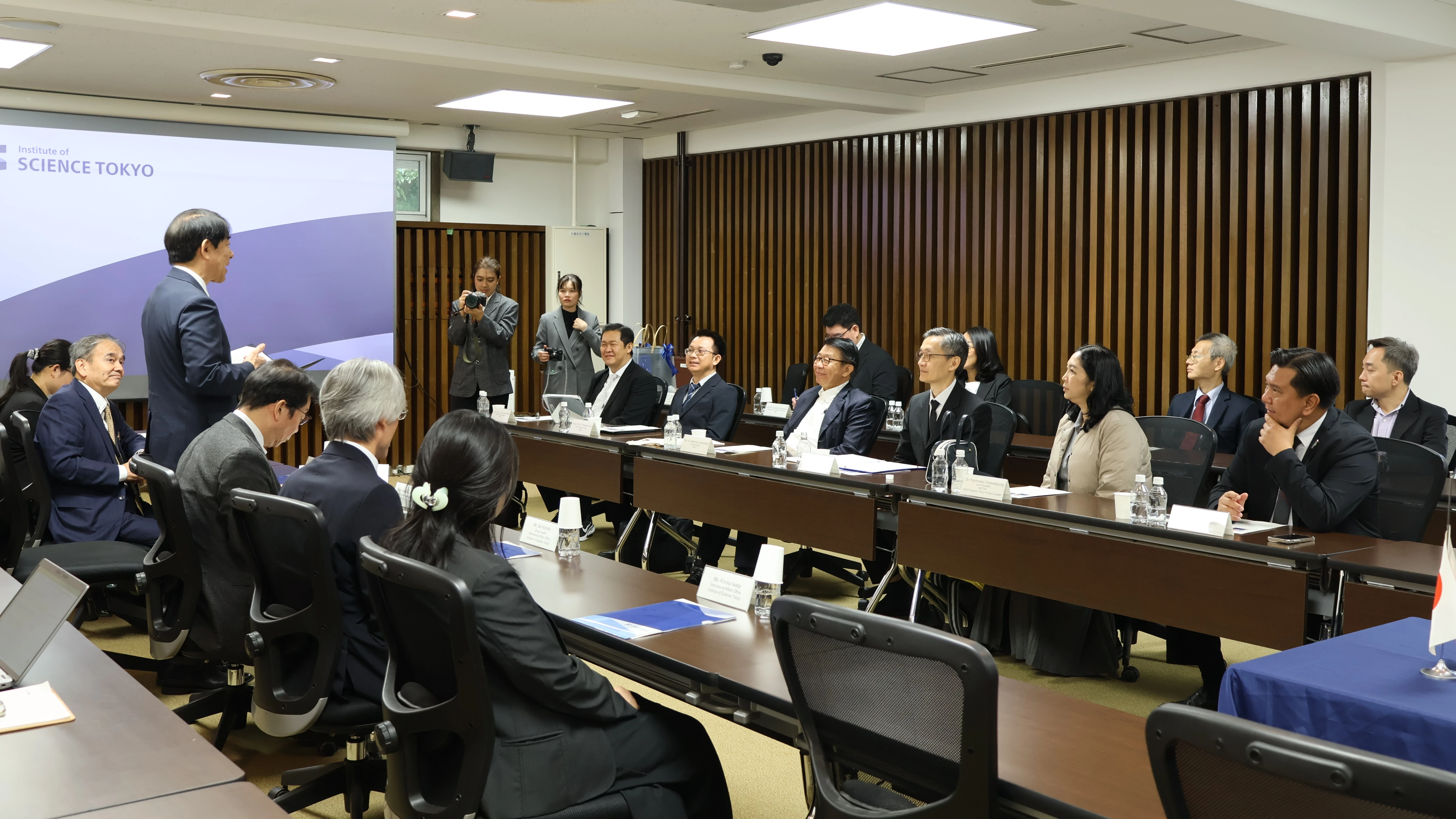 On October 28, a delegation of 19 members including Prof. Dr. Wanchai De-eknamkul, Honored Expert of National Research Council of Thailand (NRCT), and Dr. Somboon Sahasithiwat, Executive Vice President of National Science and Technology Development Agency (NSTDA), visited Institute of Science Tokyo. They had a meeting with President and Chief Executive Officer Naoto Ohtake, Executive Vice President for Education Hidetoshi Sekiguchi and other members of Science Tokyo. During the visit, they also exchanged views on the new TAIST-Science Tokyo program, Biomedical Engineering and AI (tentative title), with Vice President for International Strategy and Engagement Nobuhiro Hayashi and others, and they also participated in a laboratory tour.