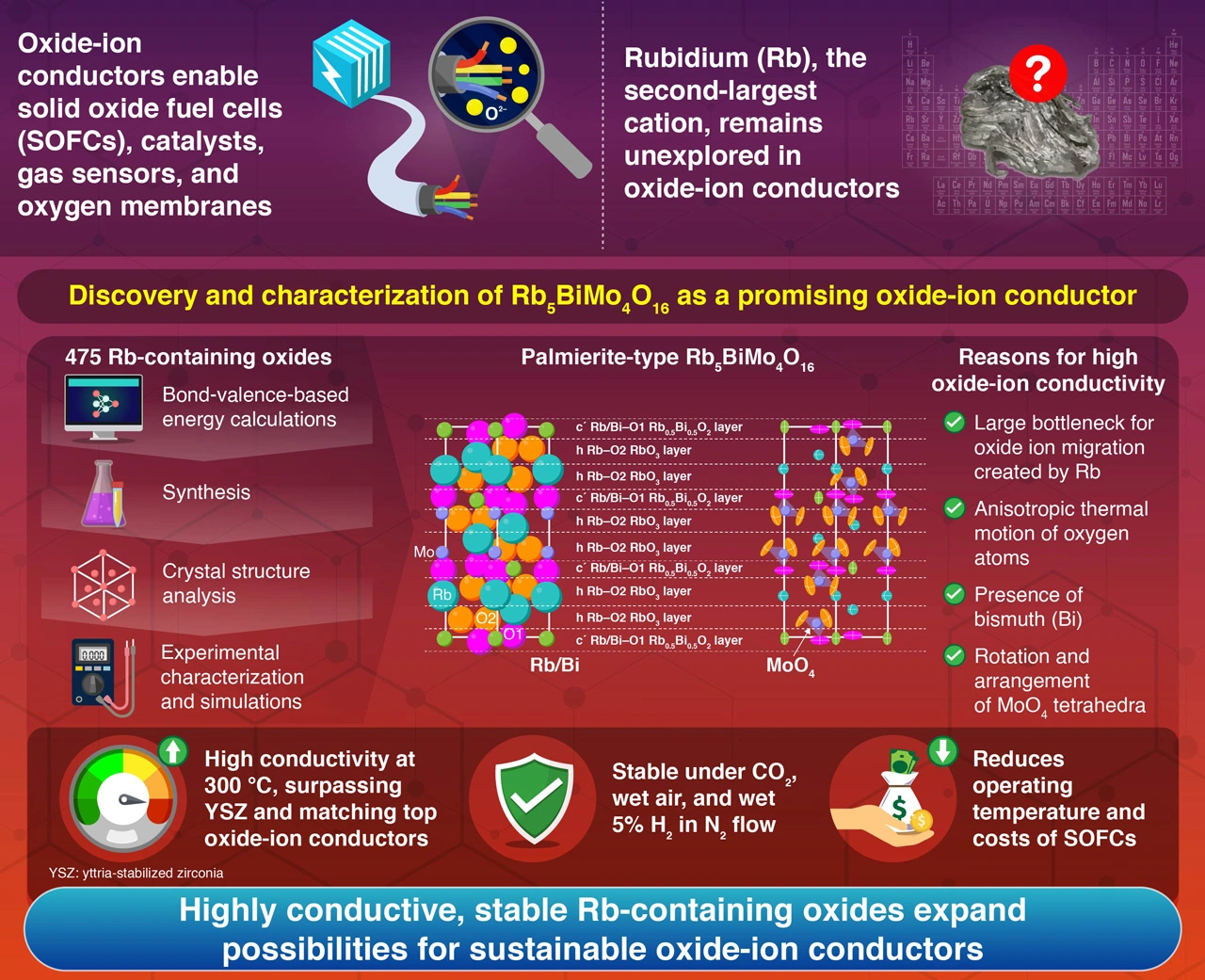 Oxide-ion conductors enable oxide ions (O2-) to transport in solid oxide fuel cells (SOFCs), which can run on diverse fuels beyond hydrogen, including natural gas, and biogas, and even certain liquid hydrocarbons. This flexibility makes them particularly valuable during the transition to a hydrogen economy. While SOFCs hold transformative potential from an energy sustainability perspective, their widespread adoption is still challenged by their cost, durability, and operating temperature range. Overcoming these hurdles requires the development of better oxide-ion conductors, and researchers in the world are constantly trying out new materials with different chemical compositions. Could rubidium (Rb) be the key to high-performance oxide-ion conductors?