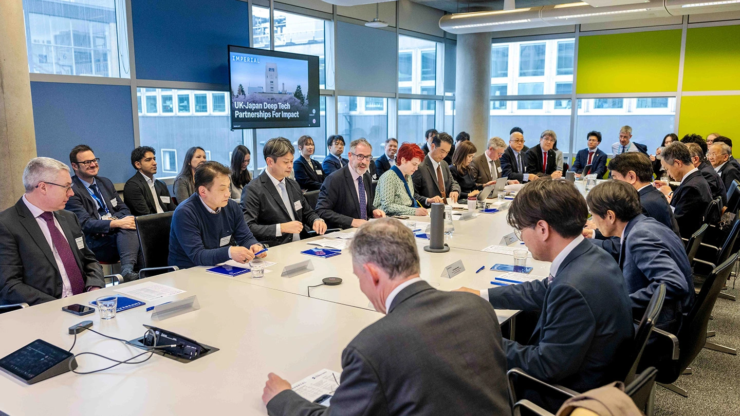 During several meetings at Imperial’s White City and South Kensington Campuses, the delegation exchanged views on industry-academia collaboration initiatives with representatives from Imperial’s Enterprise Lab (E-Lab), the Industry Partnerships team, and the Institute for Deep Tech Entrepreneurship, as well as with Professors Ian McNeish and Will Branford, co-directors at two of Imperial’s Schools of Convergence Science.