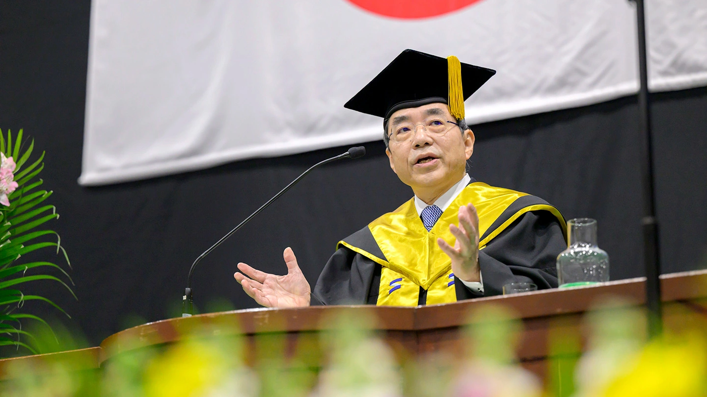 Next, Ohtake offered his congratulations, highlighting the strong sense of Science Tokyo community and commitment to the new students. "I want to assure you that, starting from today, you are all part of a diverse, inclusive community. We are all here to support you, regardless of the path that has brought you here," he said.
