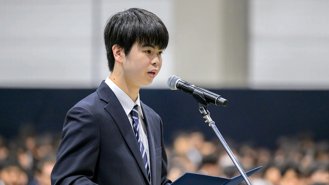 After the introduction of the Members of the Board, deans and directors, and special guests, a student representative spoke on behalf of their cohort at each ceremony. In the morning, Ryo Ikehata from the School of Environment and Society delivered a message on behalf of other bachelor's program students. In the afternoon, Ricardo from the Department of AI Systems Medicine at the Graduate School of Medical and Dental Sciences shared his words on behalf of fellow master's and doctoral students. Both student representatives shared their aspirations for their upcoming student life at Science Tokyo.