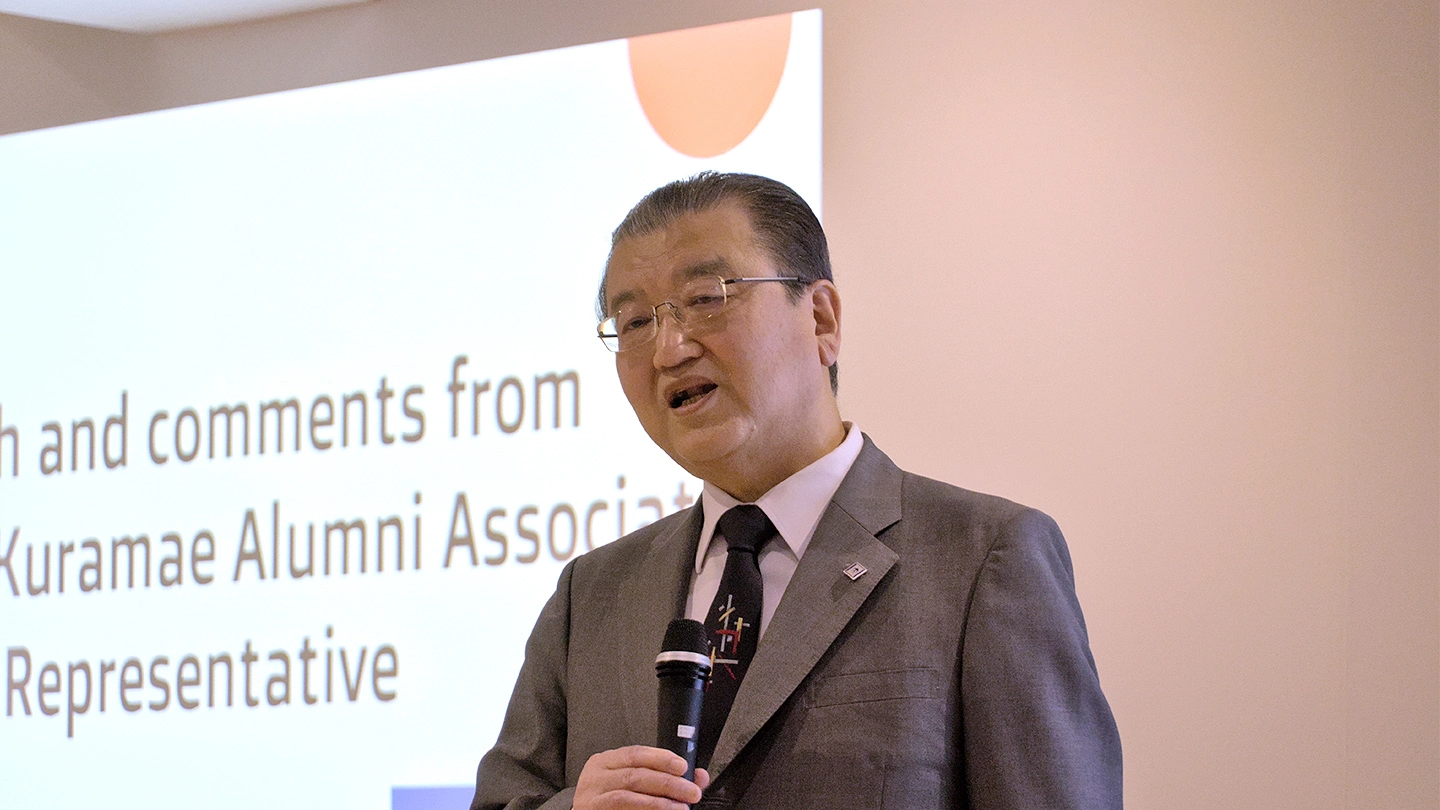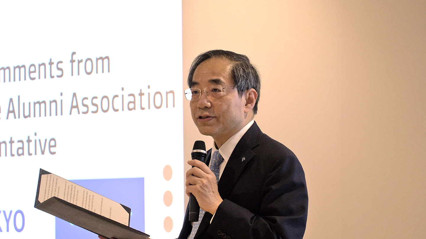 Afterwards, welcome speeches were given by President and Chief Academic Officer (CAO) Yujiro Tanaka and Tokyo Tech Alumni Association President Kiyoto Ido, who both shared encouraging words with the new international students, leaving a deep impression on all of them.