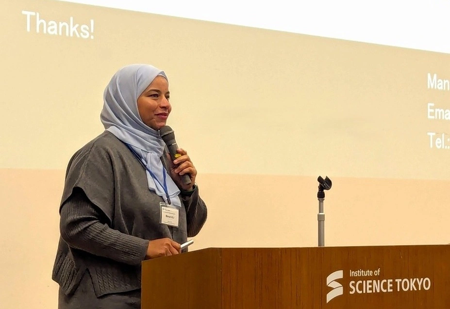 Two special guests were invited to speak at the reception: Manal Ali, Visiting Fellow at the School of Environment and Society, representing science and engineering; and Di Wang, Project Assistant Professor at the Institute of Integrated Research, representing the medical and dental sciences. The speakers shared their backgrounds, research interests, experiences at Science Tokyo, as well as their future goals.