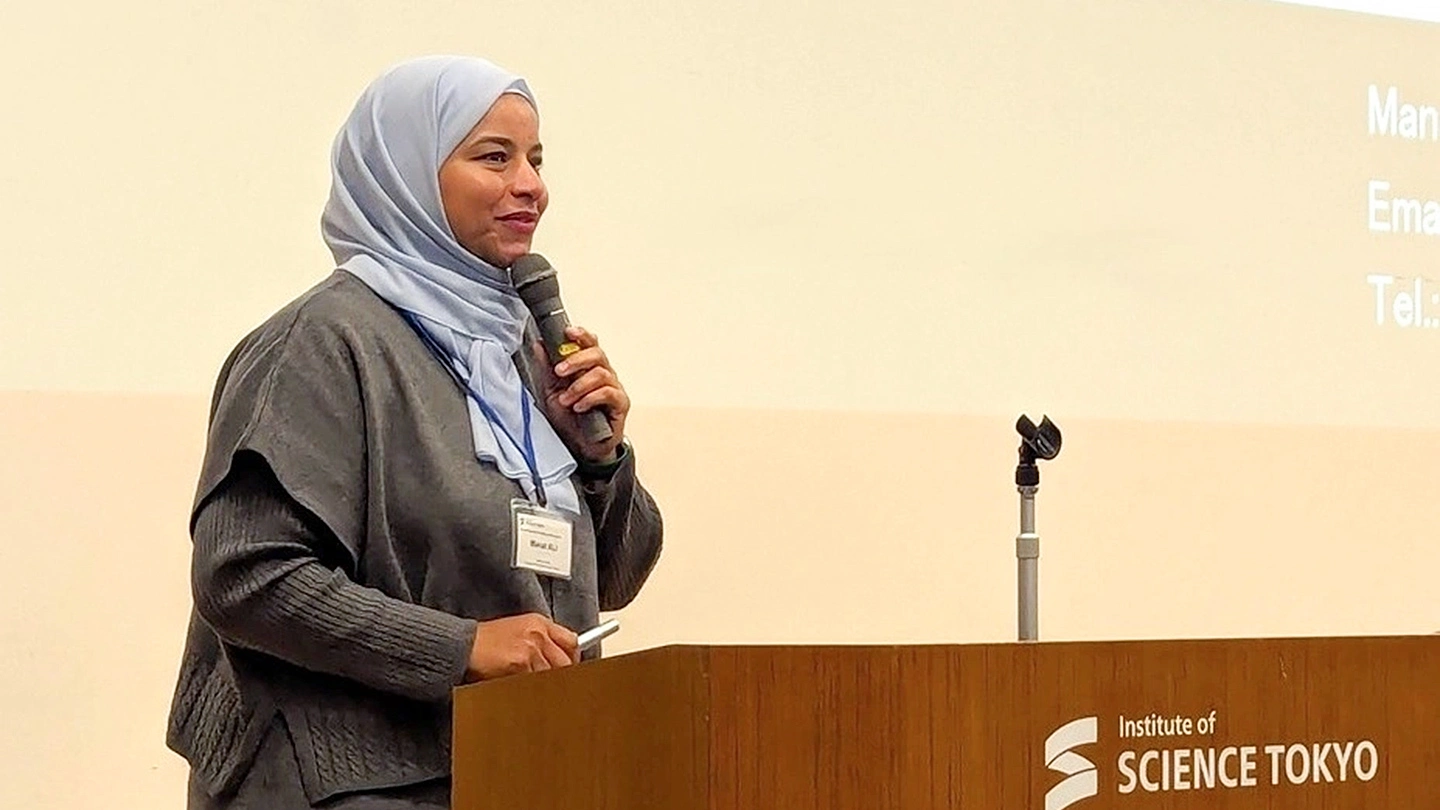 Two special guests were invited to speak at the reception. Manal Ali, a visiting fellow at the School of Environment and Society, represented the science and engineering fields. Di Wang, a project assistant professor at the Institute of Integrated Research, represented the medical and dental sciences fields. The speakers shared their backgrounds, research interests, experiences at Science Tokyo, as well as their future goals.