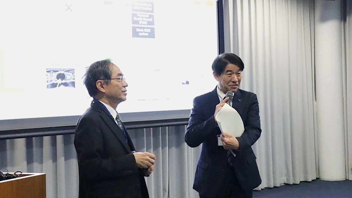 Following opening remarks by Vice President for International Strategy and Internationalization Patrick Foss, Ohtake was joined by President and Chief Academic Officer Yujiro Tanaka to talk about “building a better, brighter future together.” The executives took turns explaining a wide range of topics, including an overview and the mission of the Institute, the path to integration, and some of its recent international collaborative projects. They also highlighted the Visionary Initiatives (VIs), which together form the Institute’s vision-driven cross-disciplinary research and education framework.