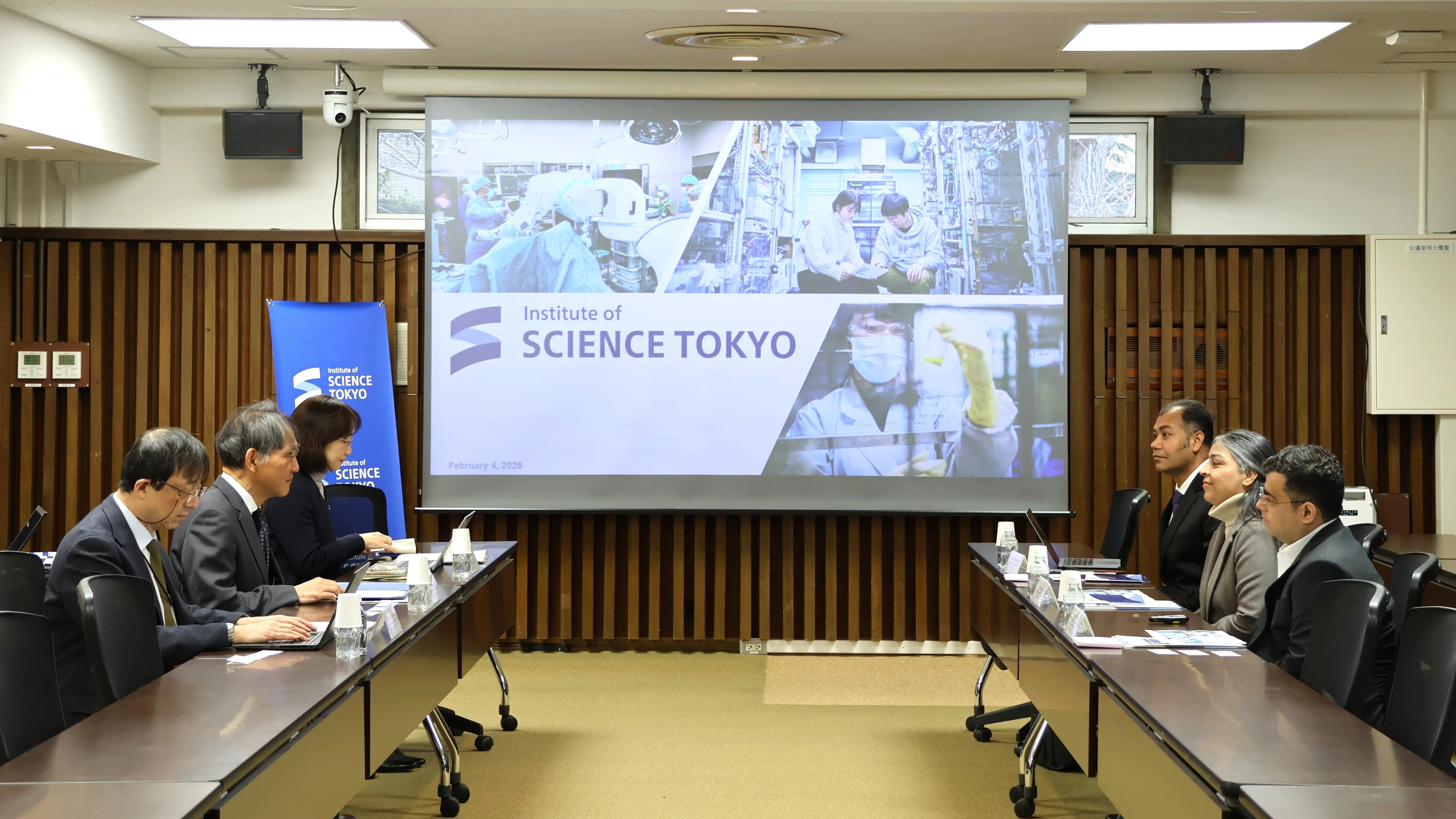 On February 4, a delegation led by Ms. Prerna Mannan, Principal of the International Curriculum at Global Indian International School in Tokyo, visited Science Tokyo. During the visit, the delegation introduced their organization, exchanged information on talent development, and discussed potential collaborations with Executive Vice President for Education Noriyuki Wakabayashi, and Executive Vice President for Global Affairs Jun-ichi Takada.