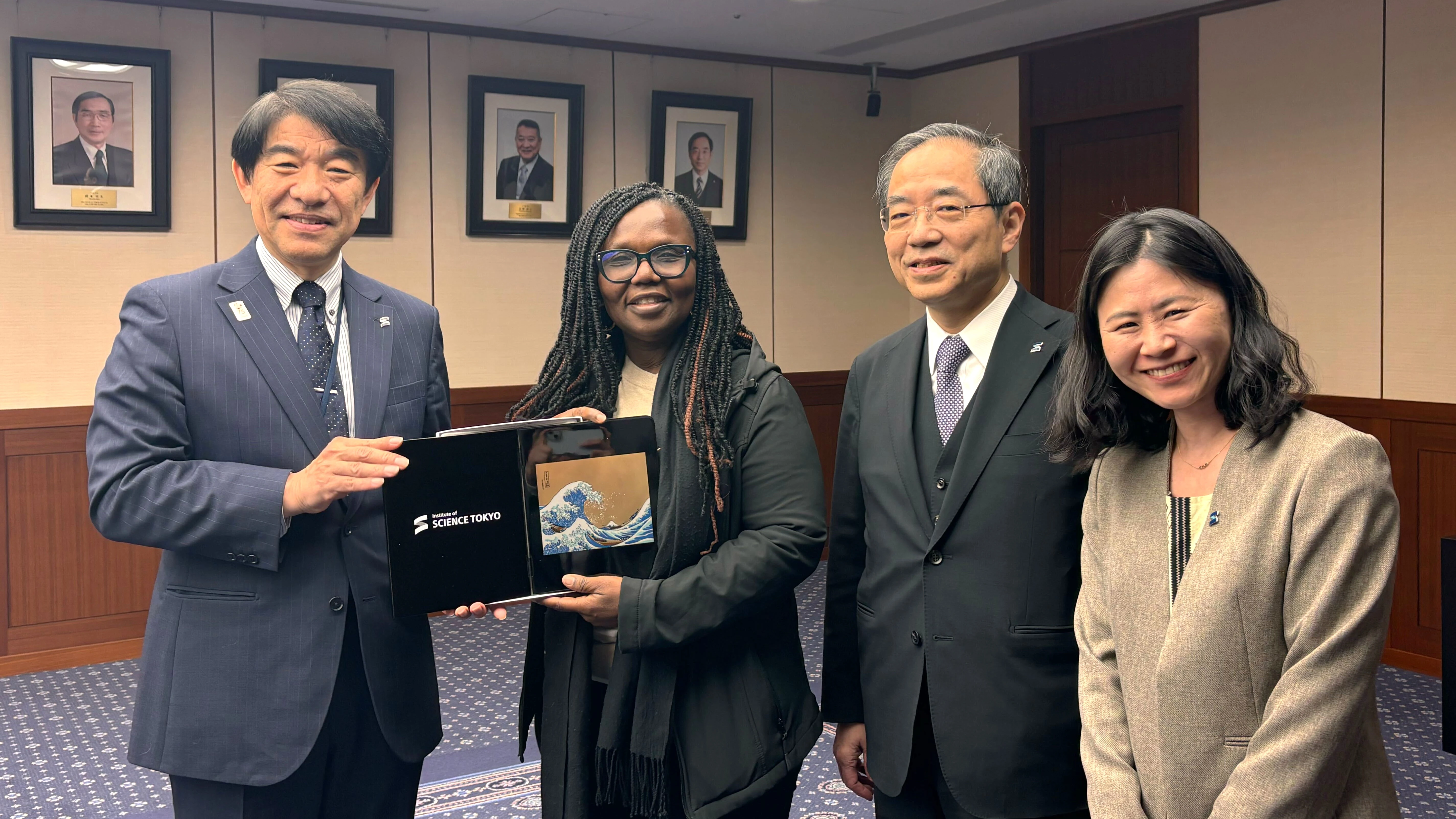On March 19, Prof. Dorothy Yeboah-Manu, Director of the Noguchi Memorial Institute for Medical Research, University of Ghana and her delegation visited Science Tokyo. During the visit, they introduced their university and exchanged information on international collaboration activities and discussed potential collaborations with President and Chief Executive Officer Naoto Ohtake, President and Chief Academic Officer Yujiro Tanaka and Prof. Tomoko Ishino from Department of Parasitology and Tropical Medicine. The delegation also exchanged views with our international students from Ghana and other relevant participants.