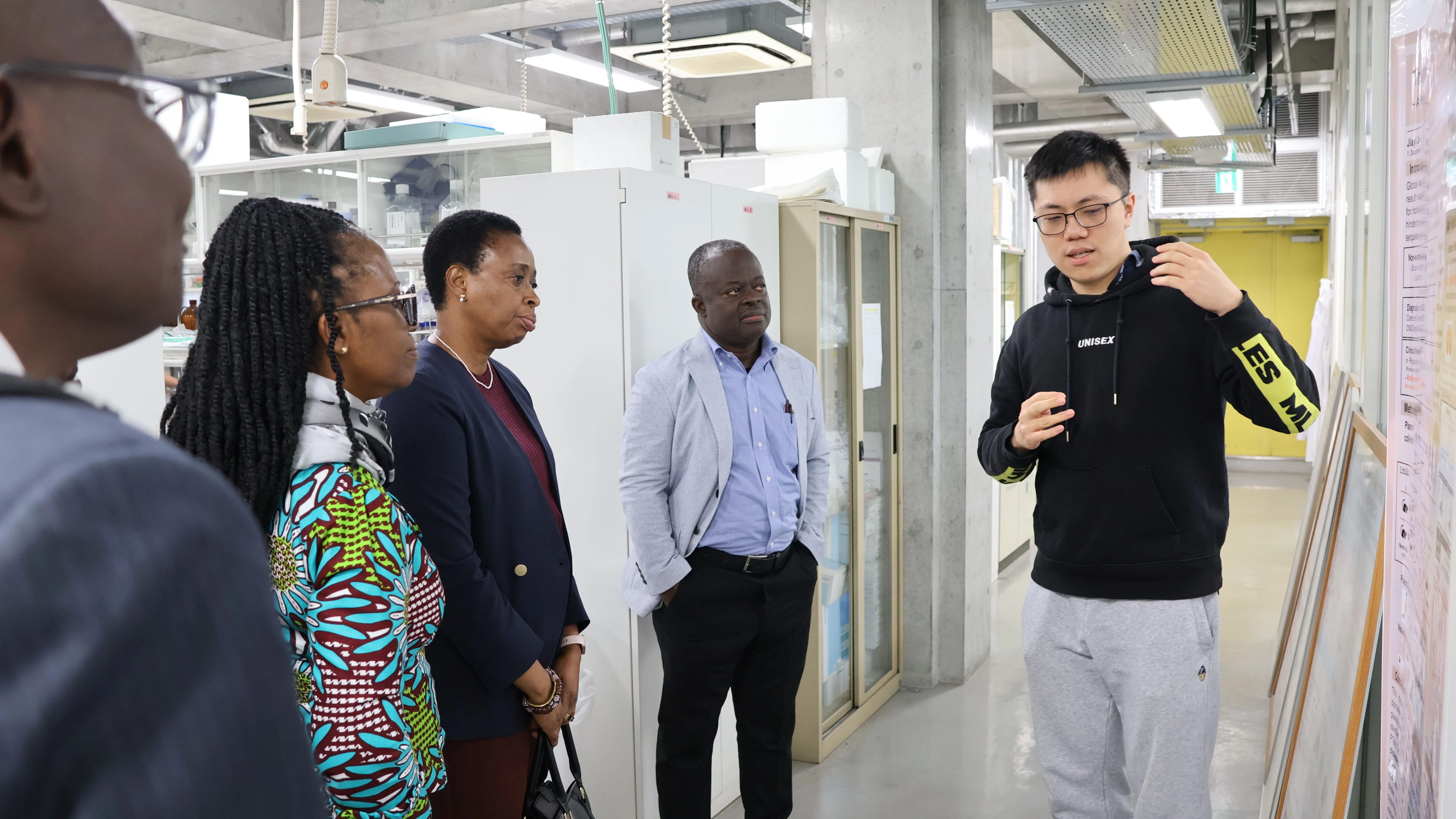On November 4, a delegation led by Her Excellency Mrs. Genevieve Edna Apaloo, Ambassador Extraordinary and Plenipotentiary of the Republic of Ghana to Japan, and Professor Felix Ankomah Asante, Pro Vice-Chancellor for Research, Innovation and Development at the University of Ghana, visited Science Tokyo. During the visit, they exchanged information on international collaboration activities and discussed potential collaborations with Vice President for International Strategy and Engagement Nobuhiro Hayashi. The visit also included a laboratory tour.