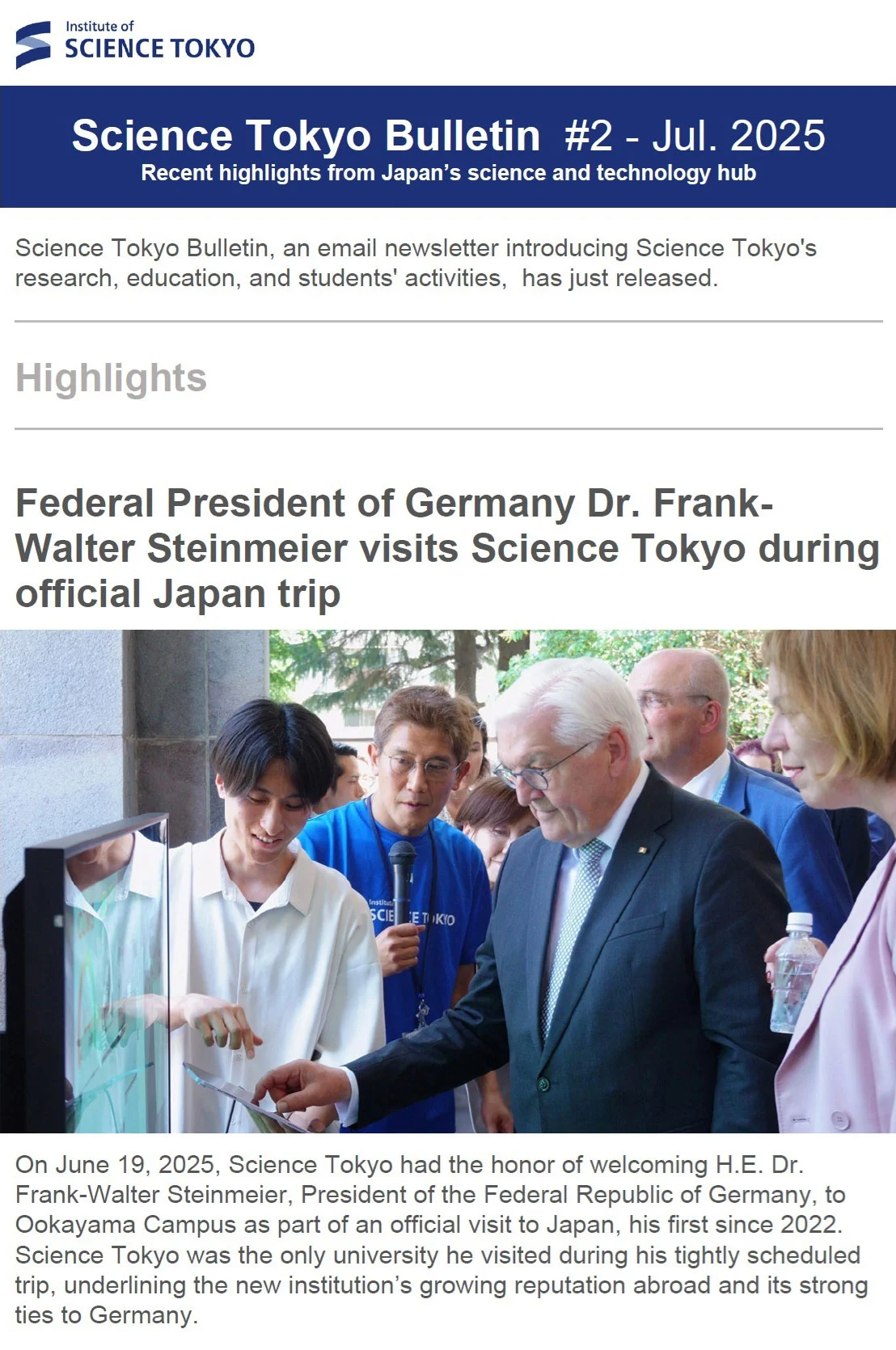 本学が配信している英文メールニュースです。本学での研究成果やニュース記事、学生の活動などを紹介し、国内外へ広くメールで配信をしています。年4回配信。