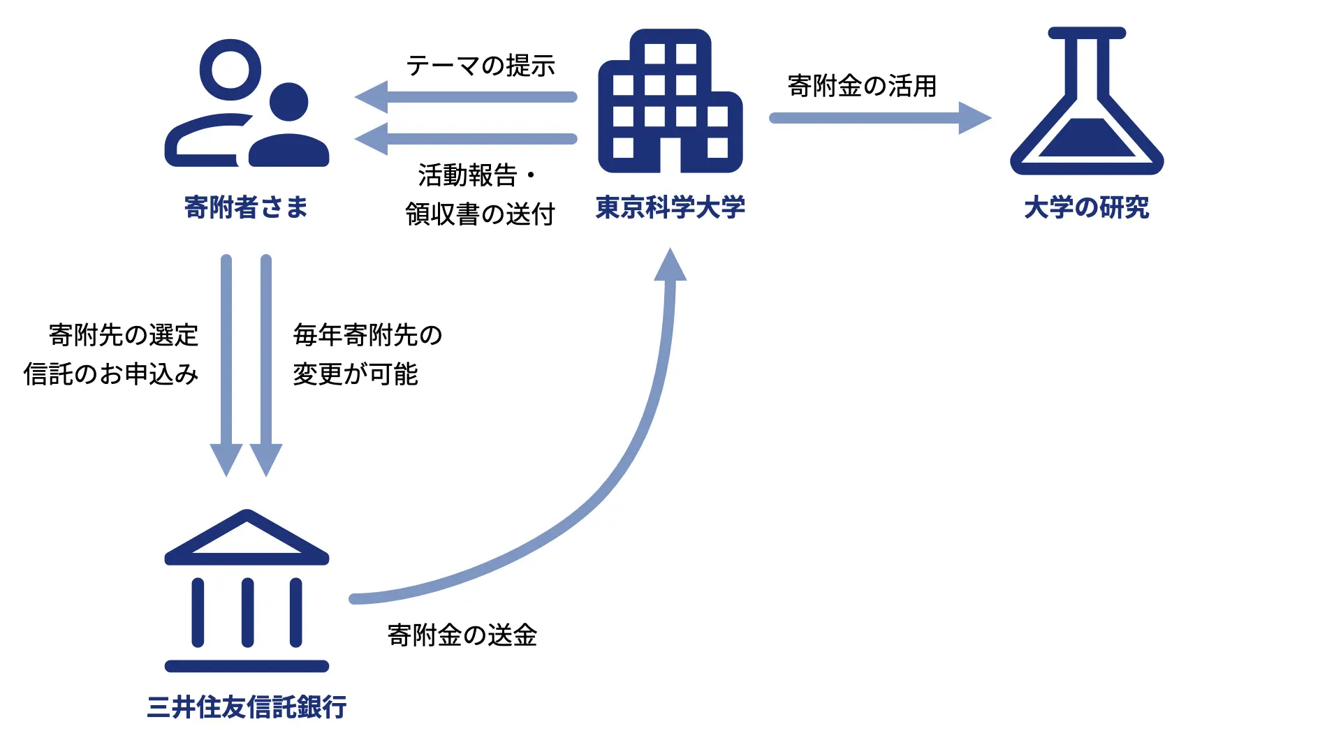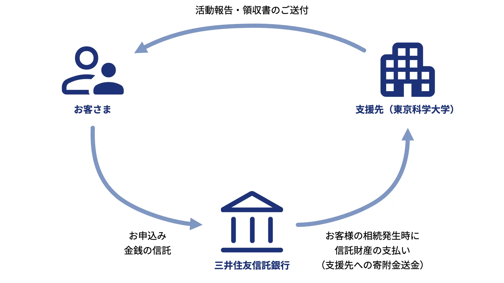 東京科学大学は、三井住友信託銀⾏が提供する寄附・遺贈に関する2つの信託商品に参画し、両商品を通じた寄附の募集を受け付けております。