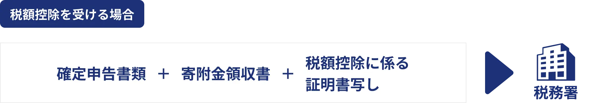 確定申告期間に、国立大学法人が発行した(1)「寄附金領収書」または「振替払込請求書兼受領証」、(2)税額控除に係る証明書写し(「修学支援基金」「研究等支援基金」へのご寄附に限ります。)を添えて税務署に申告してください。