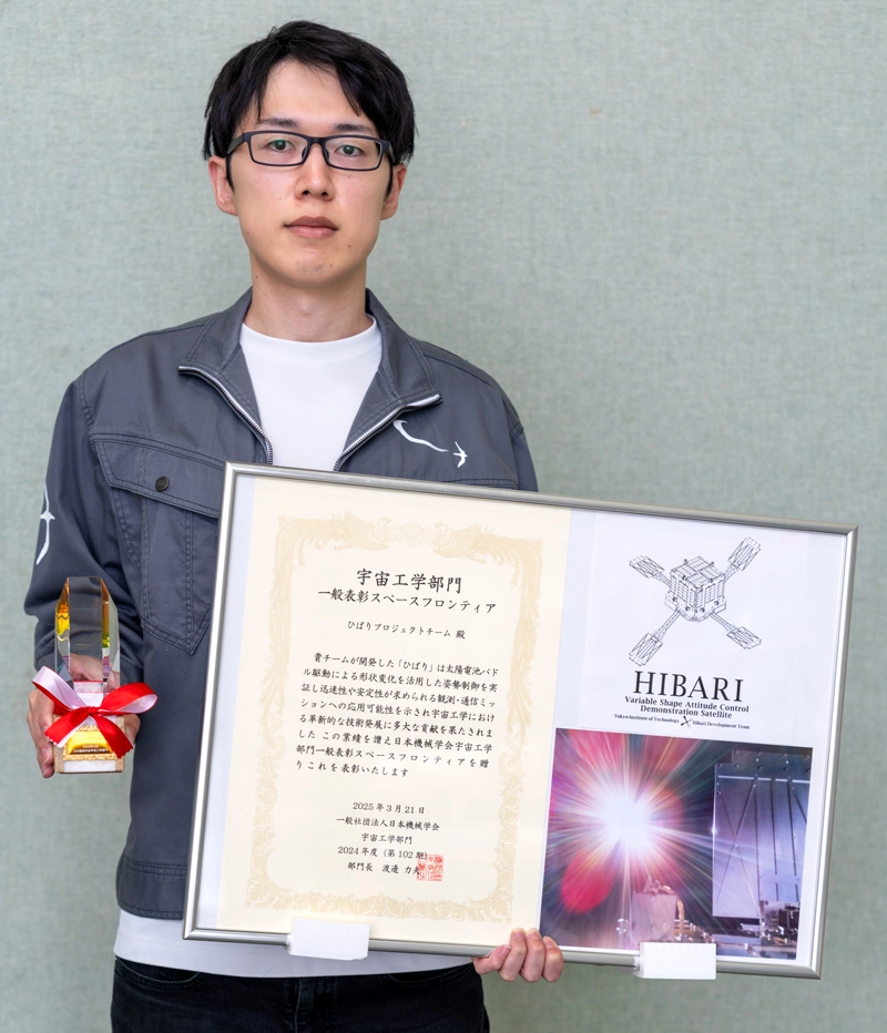 東京科学大学 総合研究院 量子航法研究センターの渡邉奎特任助教、工学院 機械系の故・松永三郎教授、中条俊大准教授、中西洋喜教授、理学院 物理学系の谷津陽一准教授らにより開発された超小型衛星「ひばり」が、軌道上での実証成果を評価され、日本機械学会 宇宙工学部門 スペースフロンティア賞を受賞しました。