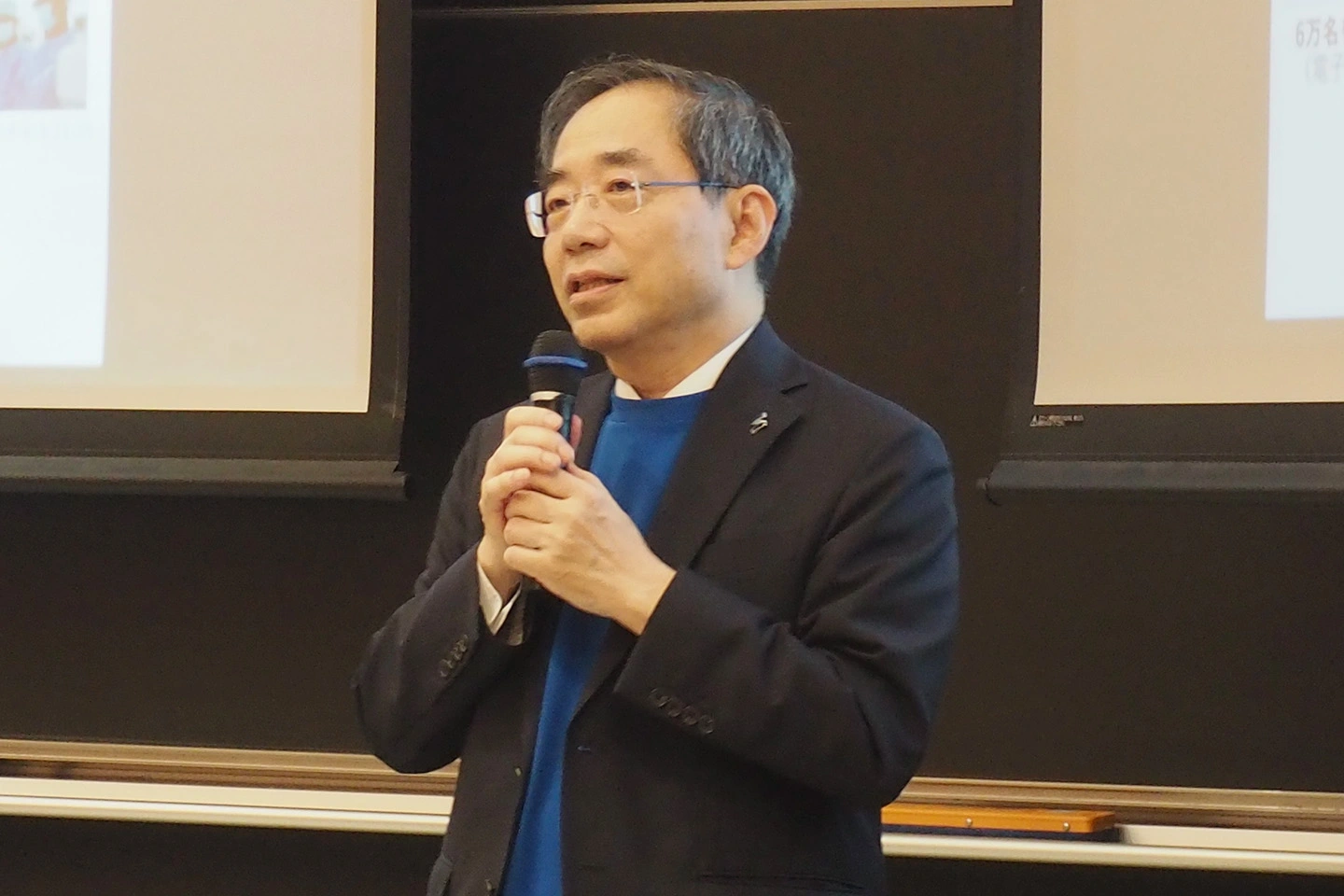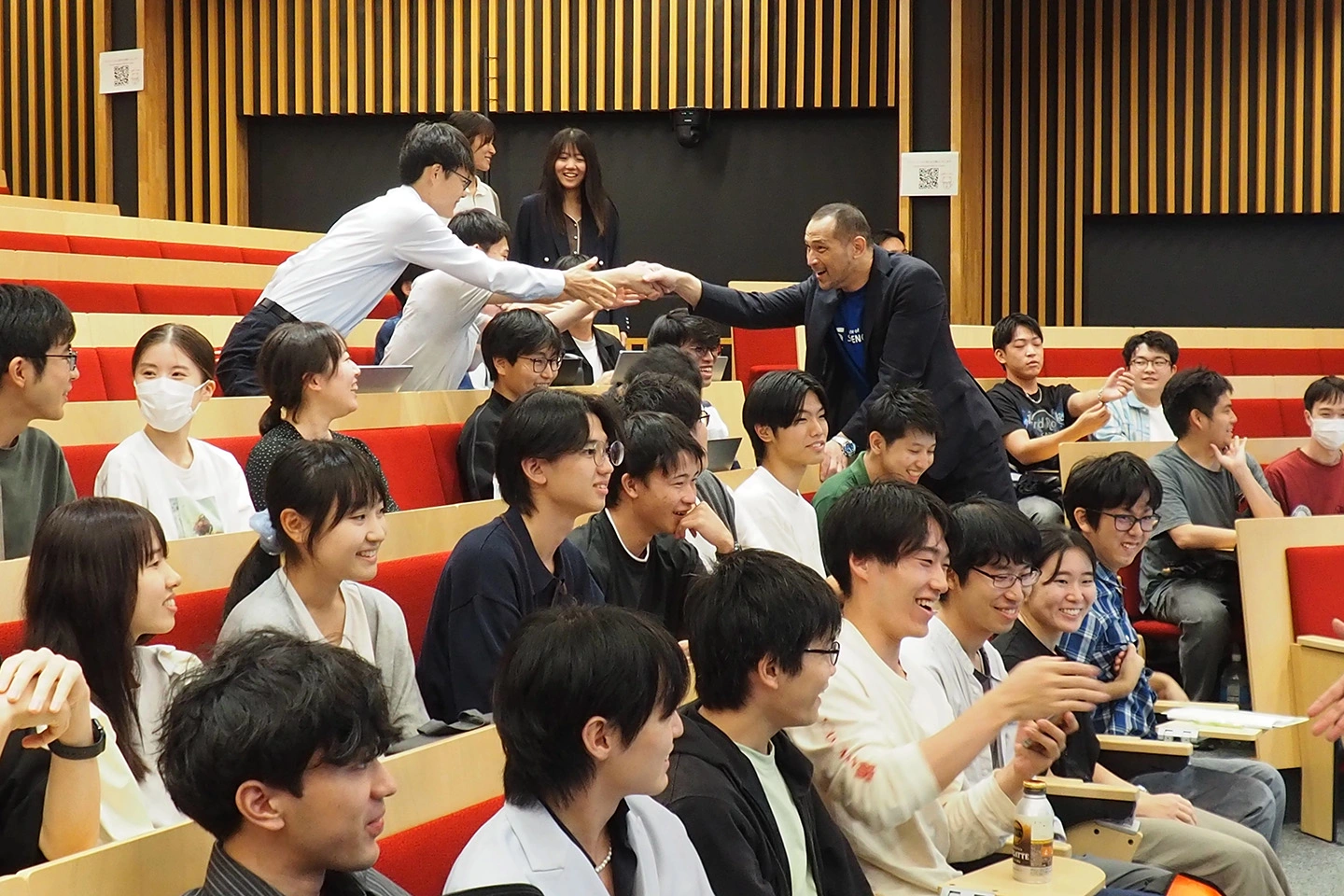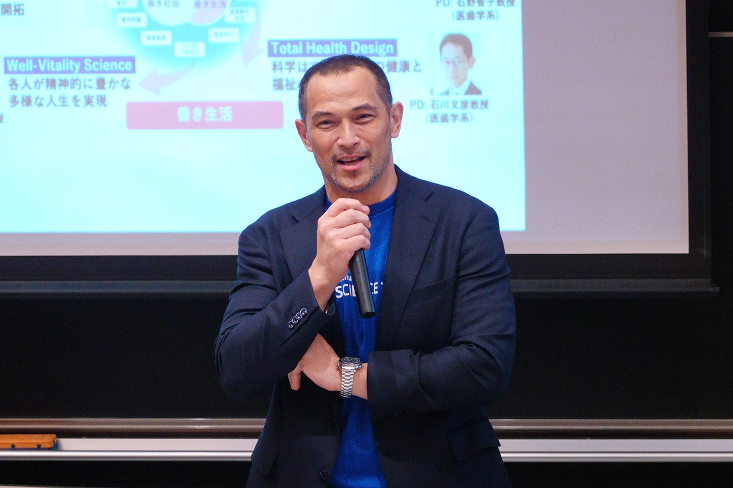 さらに、教職員対象の回だけではなく、学生のみを対象とした回を、湯島、大岡山、すずかけ台の3キャンパスにおいて実施し、国際卓越研究大学の構想の説明の他、学生生活等に関する対話を行いました。また、10月1日に大岡山キャンパスで実施した回では、同日付でScience Tokyoに就任した室伏広治副学長(スポーツサイエンス担当)が登壇しました。室伏副学長は、自身の学生時代の経験などを踏まえ、研究や日々の生活に関するアドバイスを送りました。学生からの質問にもオープンに答え、活発な意見交換が行われました。