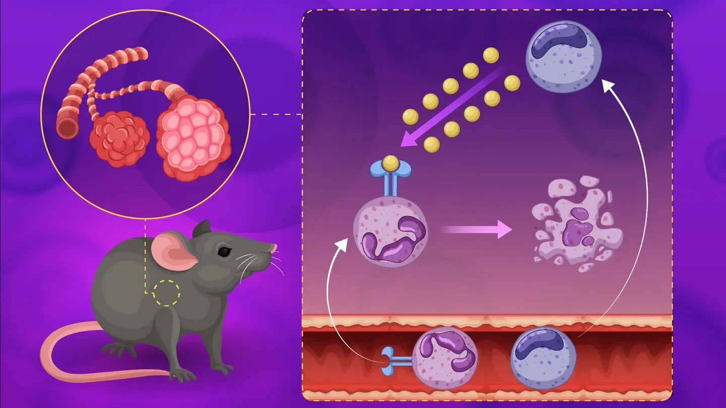 Basophils, a type of white blood cell, promote recovery from acute respiratory distress syndrome (ARDS) in mice, according to researchers at Science Tokyo. In a mouse model of ARDS, basophils were found to release interleukin-4 (IL-4), which suppresses inflammatory neutrophils in the lungs during the recovery stage. The study suggests that targeting the basophil–IL-4–neutrophil pathway could offer a new therapeutic approach for ARDS, a condition with high mortality rates and no dedicated treatments.