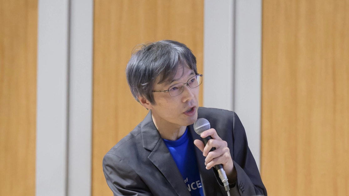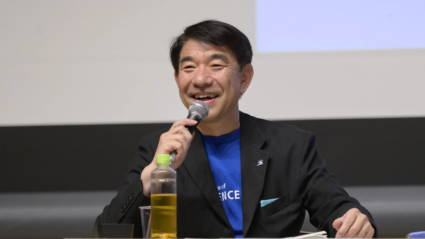 続いて第2部では「東京科学大学の未来戦略 ~統合で生まれるシナジー~」をテーマとしたパネルディスカッションを実施しました。Science Tokyoの大竹尚登理事長、田中雄二郎学長、若林則幸理事・副学長(教育担当)、古川哲史執行役副学長(研究・産学官連携担当)、学生サークルである東京科学大学CCC(Child Care Club)からは理工学系の立脇拓さん(工学院 4年生)と医歯学系の野呂静流さん(医学部 3年生)が登壇し、大学統合後の学生交流や、これからのScience Tokyoについて、活発な意見交換が行われました。また、古川執行役副学長(研究・産学官連携担当)からはScience Tokyoで新たに導入された横断型研究体制、ビジョナリーイニシアティブ(VI)について説明がありました。