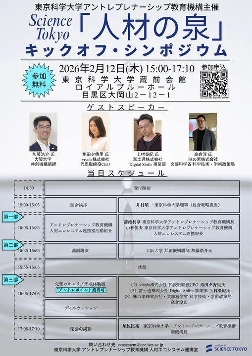 17:05-17:10 閉会挨拶 須佐匡裕 東京科学大学アントレプレナーシップ教育機構 副機構長