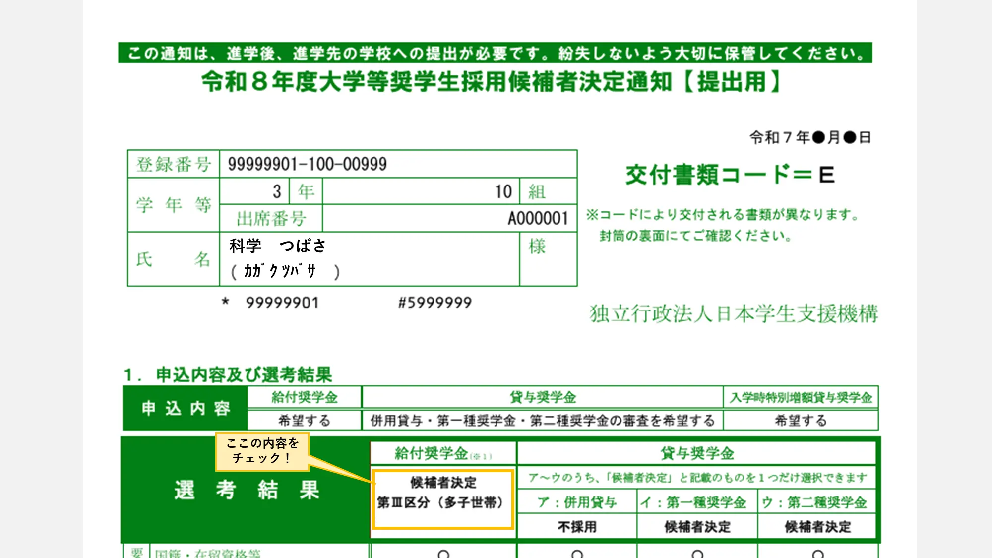 「授業料等減免のみ」という印字がある場合は、第一種奨学金にも採用されている人に限って提出が認められます。