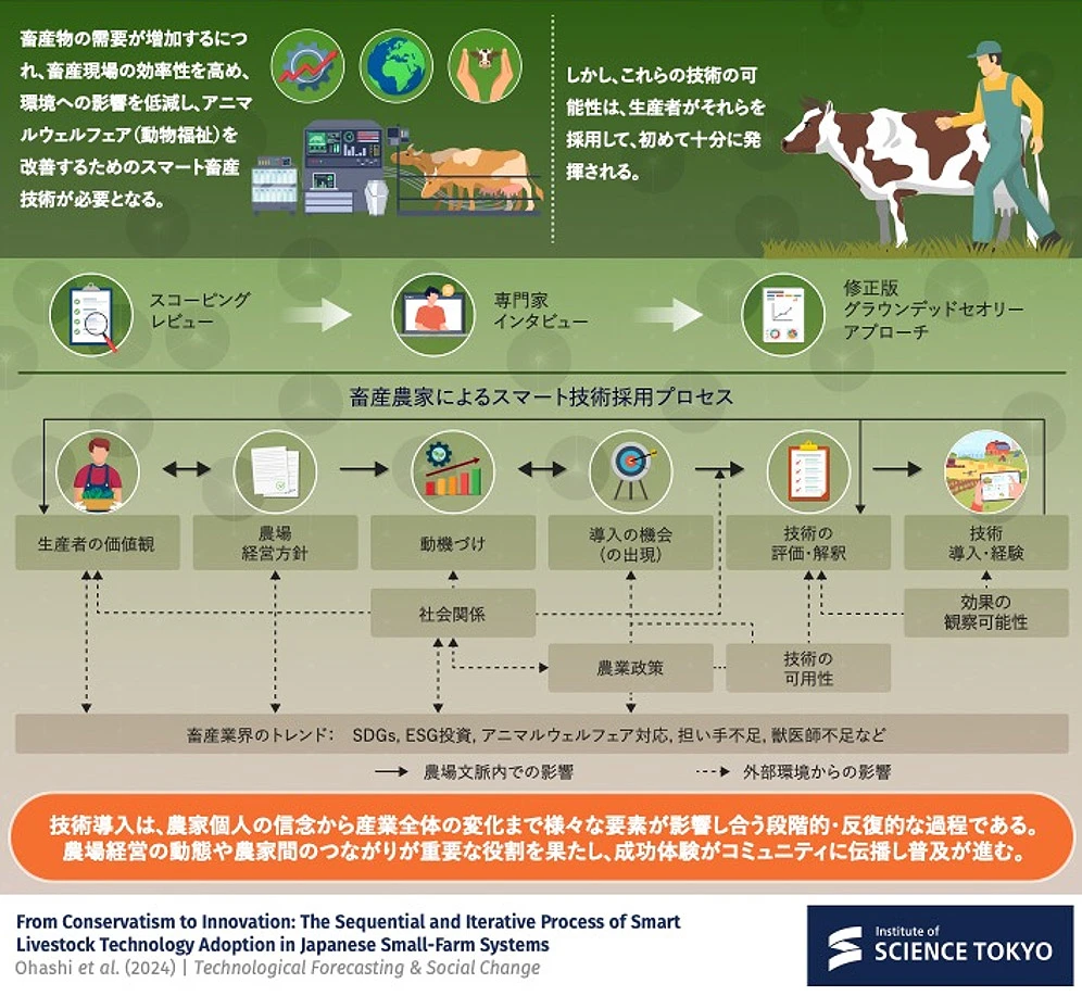 これらの知見は、技術普及戦略の策定において、社会技術システム全体の動体を考慮することの重要性を強調しています。本研究は、日本の畜産業における持続可能なシステムの実現に向けた重要な理論的基盤を提供し、今後の技術導入支援策の精緻化に貢献するものです。本研究成果は、科学誌「Technological Forecasting & Social Change」に9月2日にオンライン掲載されました。