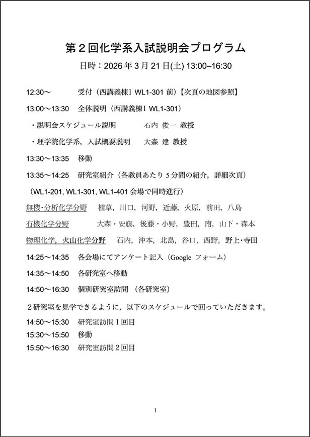 理学院化学系、入試概要説明:大森建 教授 - 13:30~13:35