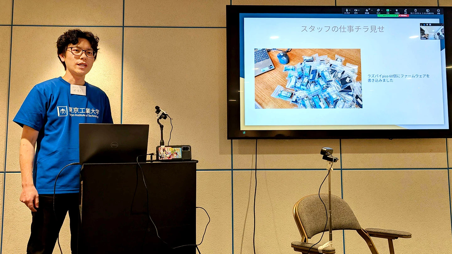 ワークショップの冒頭、情報理工学院の山村雅幸教授は「これから製作するデバイスは、おもちゃではなく実際に家で使える本物です。設置しておくとデータがドバッと出てくるので、『この時間に冷蔵庫を開けているのは誰だ?』という犯人探し(?)までできちゃいます!」と語り、参加者の興味を惹きつけました。また、自身が研究を進めているスマート農業などの最先端分野においても、こうした「現場の現象をデータ化する技術」が欠かせない基盤となっていることを紹介しました。