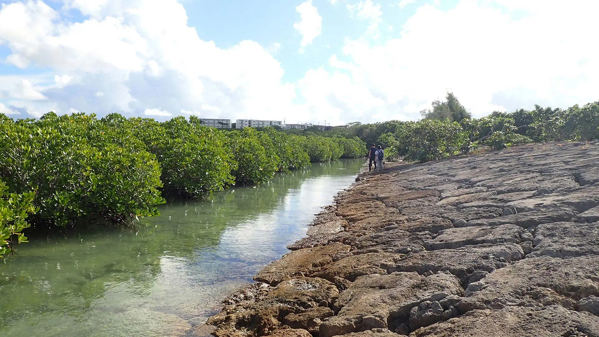 髙木泰士教授は、熱帯沿岸のマングローブ林を人々の命を守る天然の防波堤として活用する研究に取り組んでいる。マングローブ林はCO2を吸収・貯留し地球温暖化を食い止める役割と、海面上昇や高潮から物理的に陸地を守る防災機能を併せ持つが、現在、経済開発などにより急速に失われつつある。一方、気候変動による災害リスクが高まる中、従来の巨大なコンクリート堤防などのグレーインフラ[用語1]への依存は限界に達している。生態系や景観を損なう上に、全ての沿岸を人工構造物で恒久的に維持管理することは、先進国であっても財政的・技術的にもサステナブルとはいえないだろう。