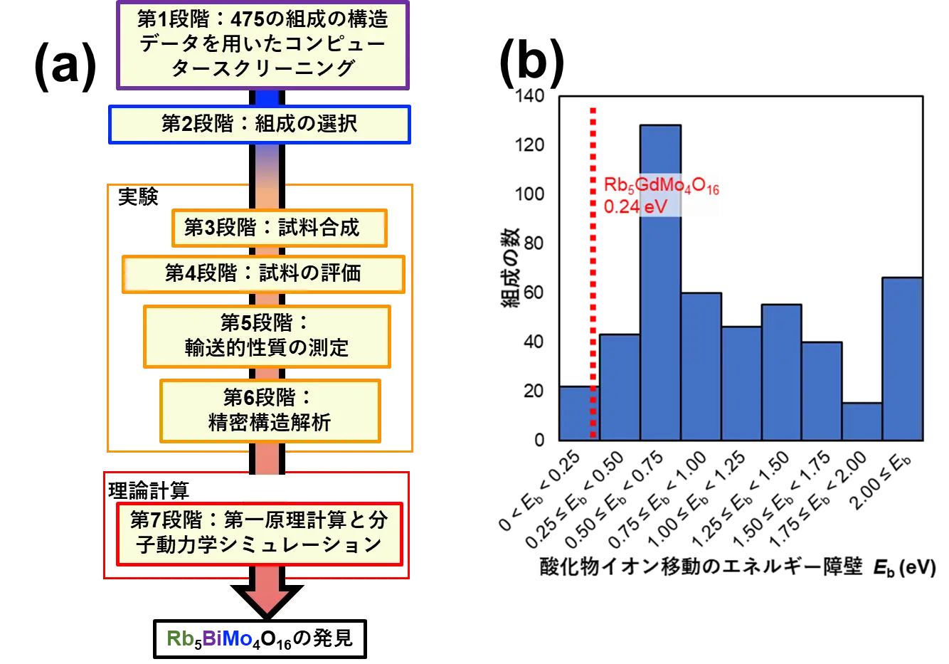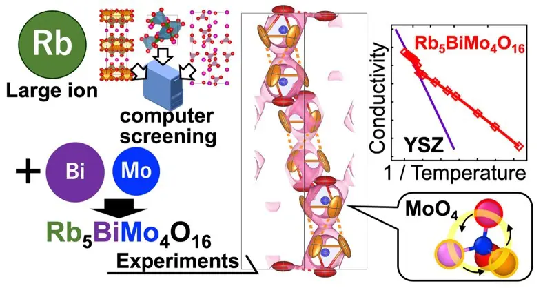 東京科学大学(Science Tokyo)※ 理学院 化学系の八島正知教授、安井雄太大学院生(研究当時博士課程3年次)、城島一暁大学院生(研究当時修士課程2年次)、藤井孝太郎助教と高エネルギー加速器研究機構 物質構造科学研究所/J-PARCセンターの森一広教授の研究グループは、高い酸化物イオン伝導度[用語1]と高い安定性を示す材料群 Rb5BiMo4O16とRb5RMo4O16[用語2](Rは希土類)を発見しました(図1)。