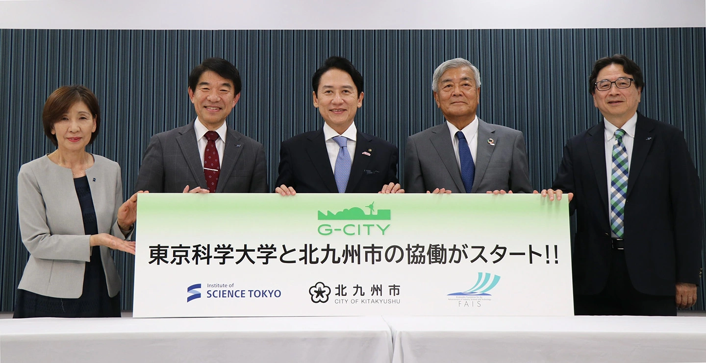 8月18日(月)、北九州市の武内和久市長、FAISの松永守央理事長、Science Tokyoの大竹尚登理事長出席のもと、協定調印式が北九州市役所において行われました。