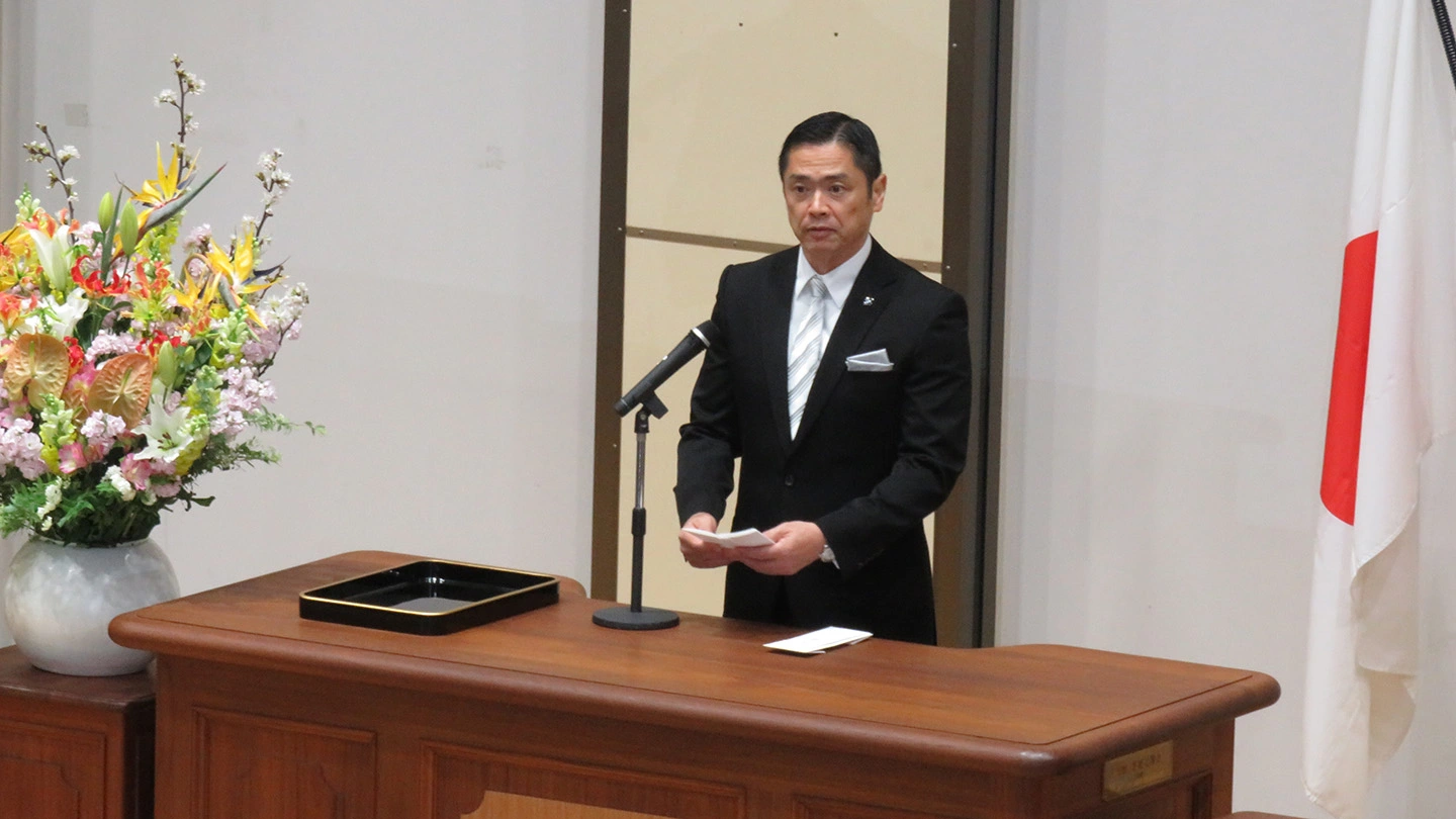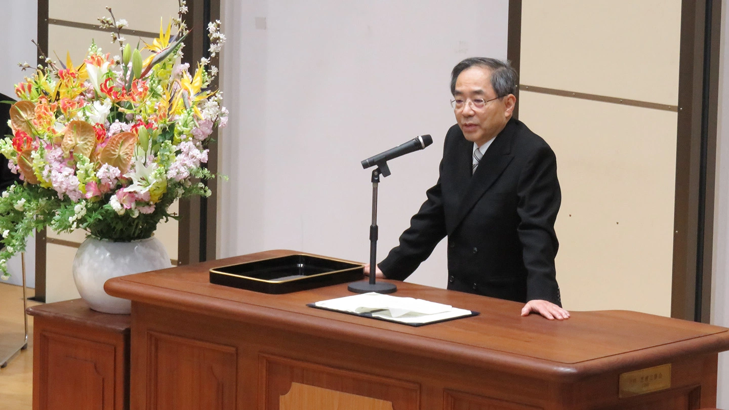 次に、東京科学大学(Science Tokyo)の田中雄二郎学長は祝辞として、本学が国際卓越研究大学に認定されたことに触れ、「世界水準の学術研究が日常的に営まれる場に隣接する附属校の生徒として、皆さんは大変恵まれた出発点に立っています。在学中に、ぜひ大学の研究や研究者の姿に目を向けてみてください。その刺激が、皆さん自身の志を育てる大きな糧となるはずです」と述べました。さらに、「この3年間、一般・専門科目の学びに真剣に取り組み、課題研究を通じて自ら問いを立て、探究する力を培ってください。その過程で壁にぶつかることもあるでしょう。しかし、それこそが本物の学びであり、成長の証です。課外活動を通じて良い友人を得て、語り合い、励まし合いながら豊かな心を育んでいただきたいと思います」と新入生にエールを送りました。