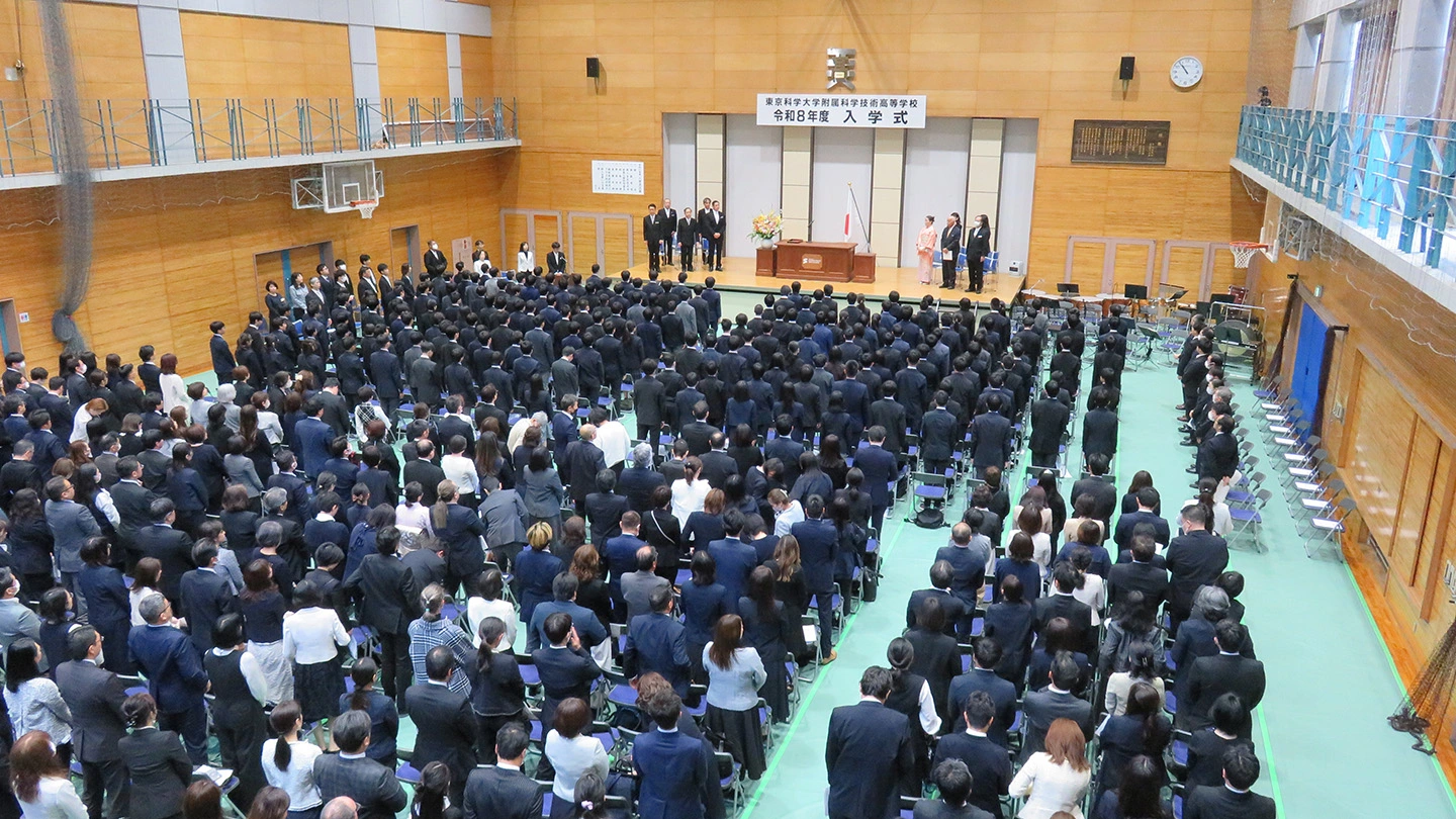 東京科学大学附属科学技術高等学校(Science Tokyo High School)は4月6日、田町キャンパスの附属高校体育館にて、2026年度入学式を執り行いました。桜が咲き誇る中行われた式典には、190人の新入生とそのご家族、および附属高校の梶原将校長をはじめ、高校関係の教職員、学長、理事、来賓が出席しました。附属高校は、2027年4月に大岡山キャンパスへの移転が予定されていることから、田町キャンパスで執り行われる最後の入学式となりました。