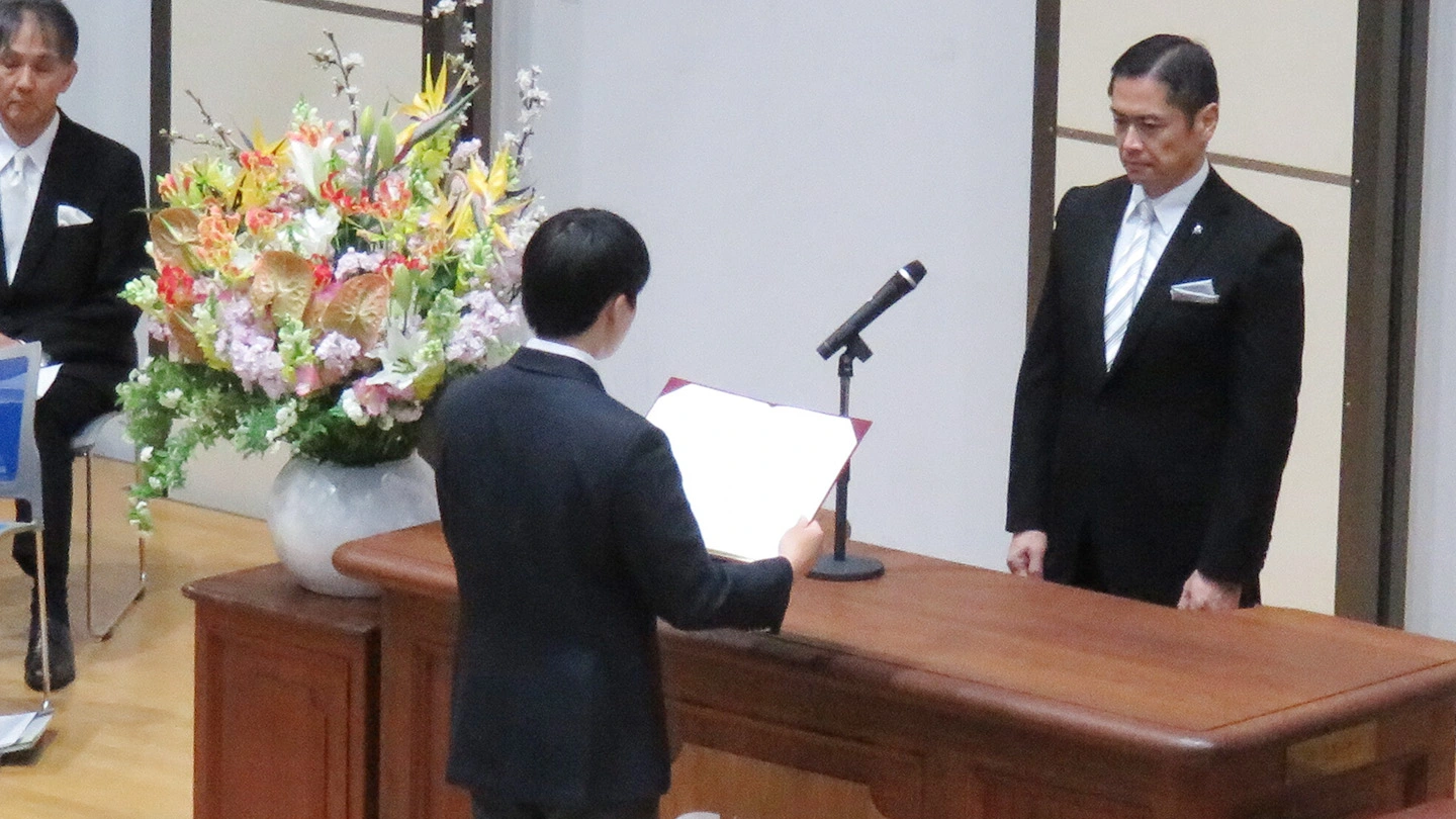 式の最後には、新入生代表が誓いの言葉を述べ、「新しく出会う仲間と共にお互い切磋琢磨しながら勉学に励み、将来、世界で活躍できる科学技術者を目指して日々努力を惜しまないことをここに誓います」とこれから始まる高校生活への抱負を語り、閉式となりました。