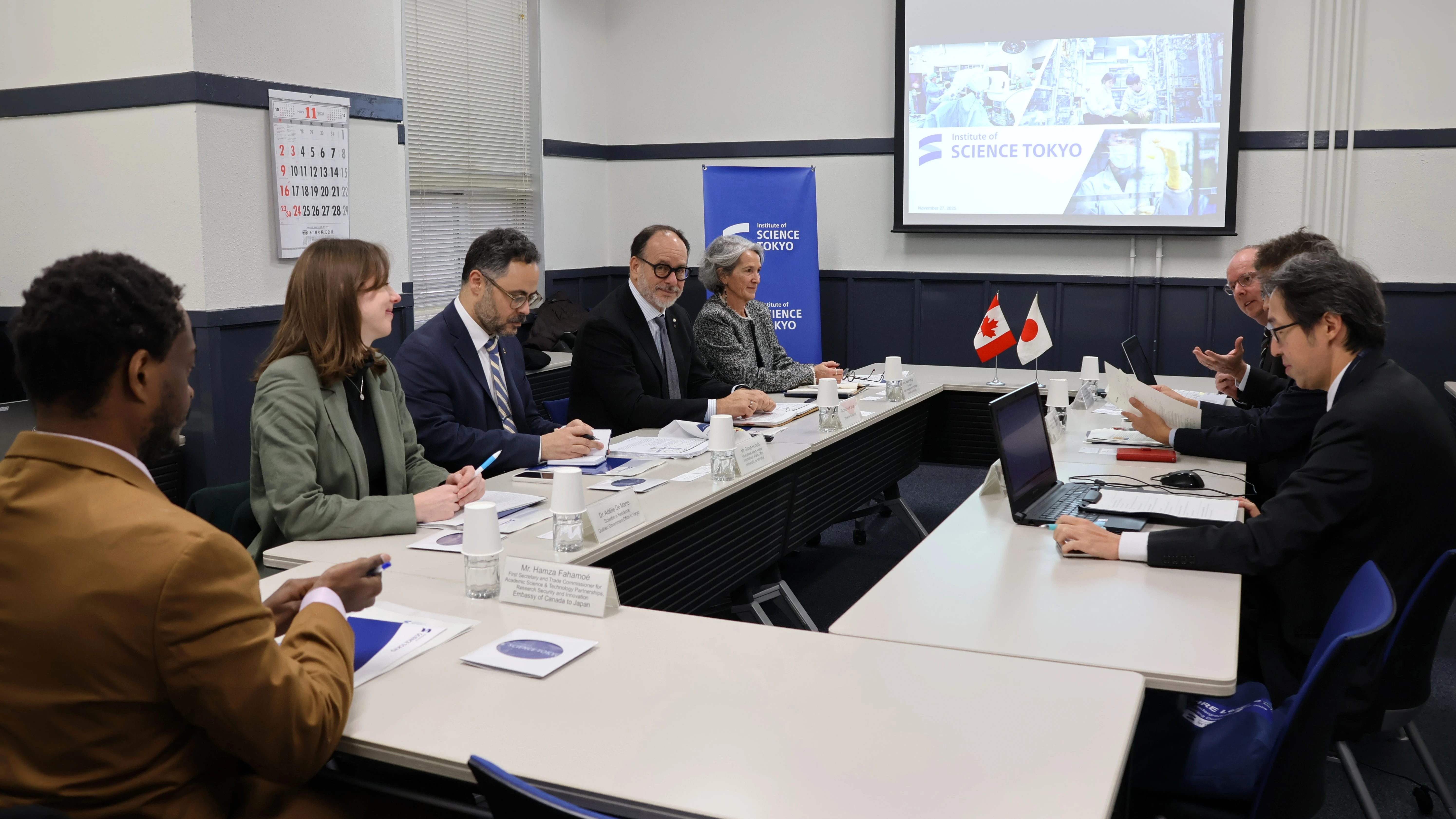 11月27日(木)、カナダ・モントリオール大学のダニエル・ジュトラス学長一行が東京科学大学(Science Tokyo)を訪れ、阪口啓副学長(研究戦略・研究企画支援担当)、Patrick Foss副学長(国際戦略・国際化担当)と共に、両大学の紹介や国際交流の現状について懇談し、今後の交流、研究の可能性について活発な意見交換を行いました。