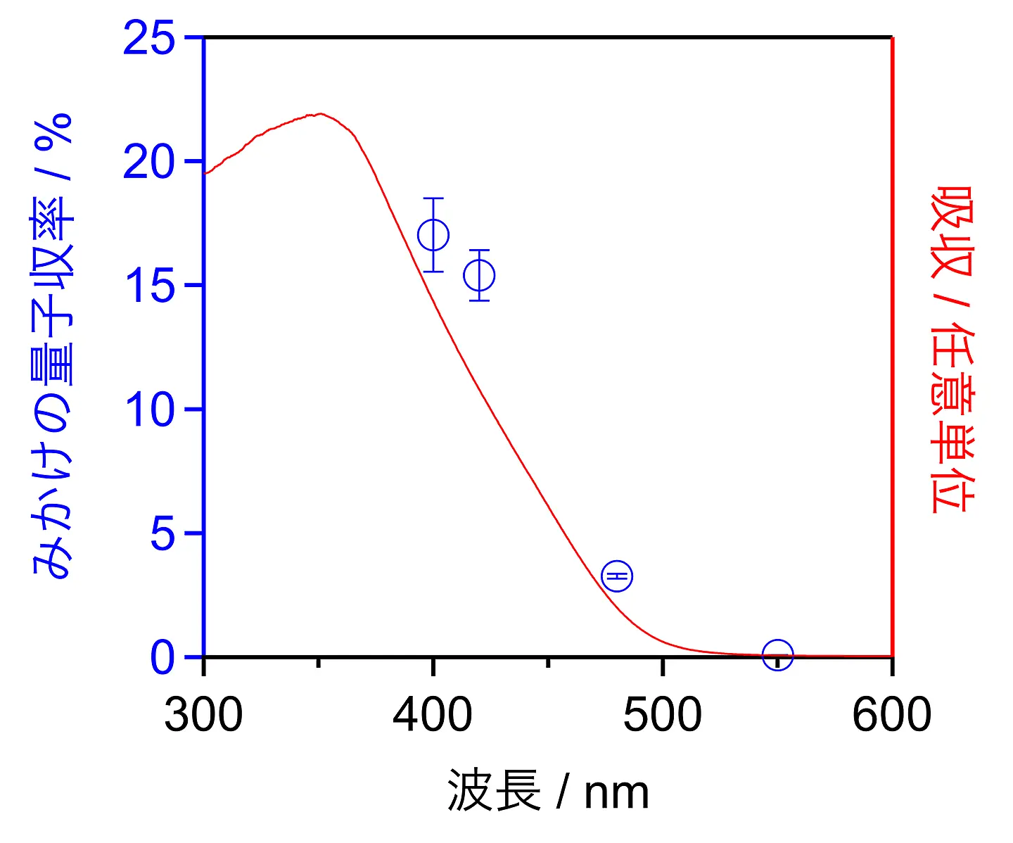 - 量子収率:ある反応系が吸収した光子数に対して、生成物を生成するために使用された電子数の割合のこと。反射等の理由で反応系が吸収した光子数を厳密に計数できない場合は、“みかけの量子収率”として、入射光子を全吸収したという仮定のもとに計算される。