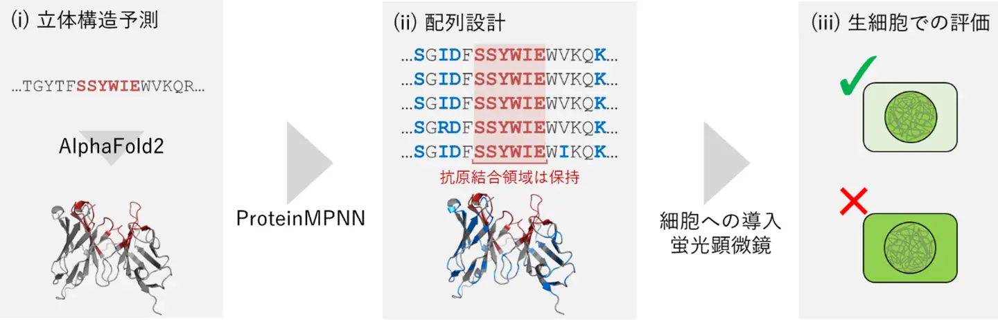 - AIツールを用いた設計と生細胞スクリーニングで、抗体配列から機能的細胞内抗体を高効率に設計する手法を開発