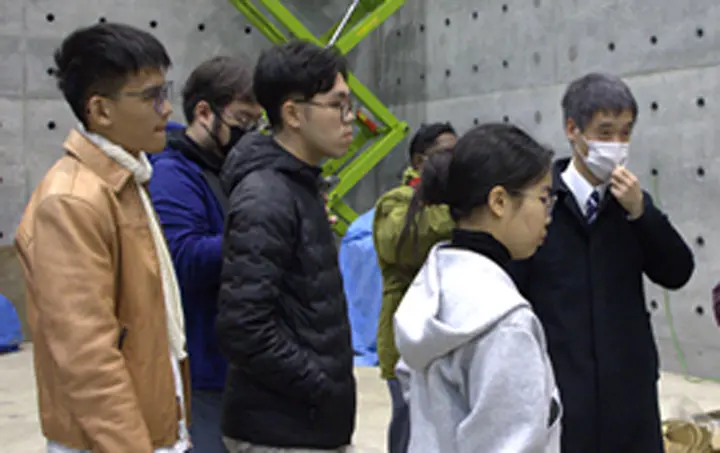 2日目は、彼らの専門が土木工学であり、地震工学や持続可能な建設材料に関する研究に興味を持っていることから、環境・社会理工学院の吉村千洋教授に学院紹介と研究室訪問をご調整いただきました。まず吉村先生より、環境・社会理工学院および本学への留学についてご紹介いただき、続いて千々和伸浩教授、松崎裕准教授からそれぞれの研究内容について説明を受けました。その後、一同は各研究室を訪問し、実際の研究環境に触れることができました。