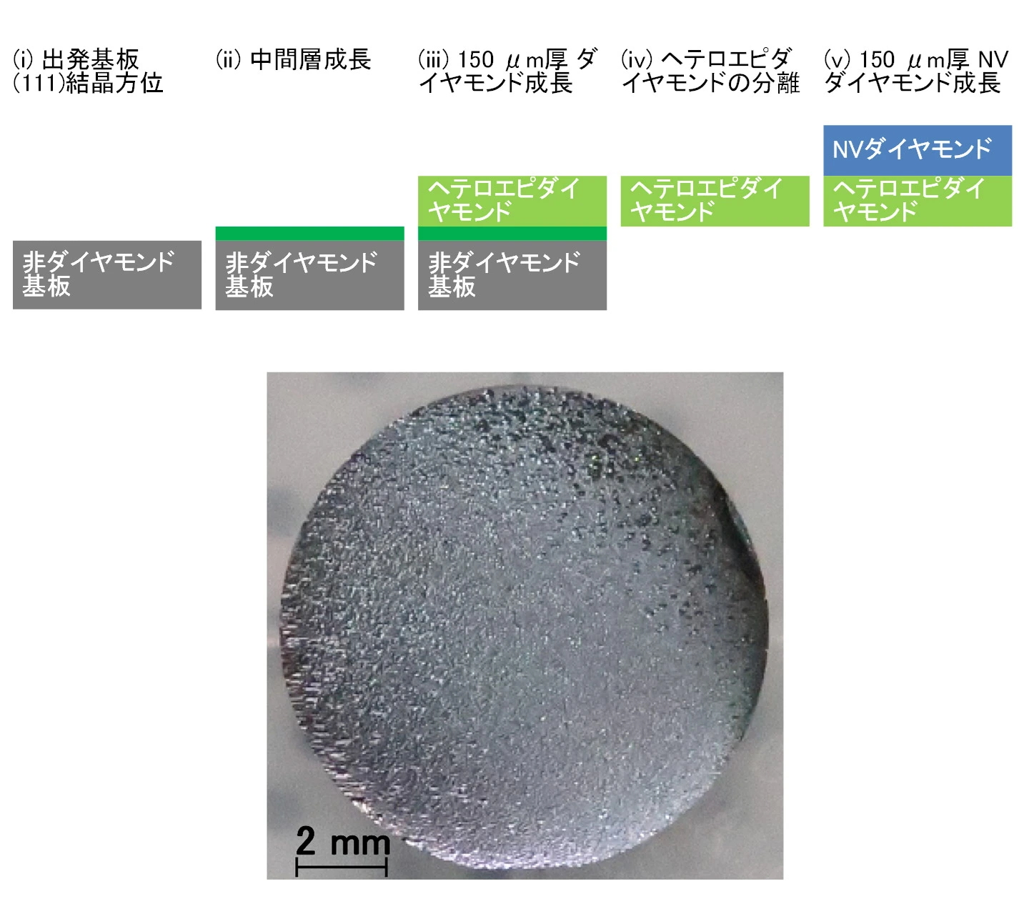 - 異種基板上のヘテロエピ成長技術により、量子センサに適した(111)結晶方位とコヒーレンス時間を備える“量子品質”の10 mm径以上のダイヤモンド結晶基板の作製を実現