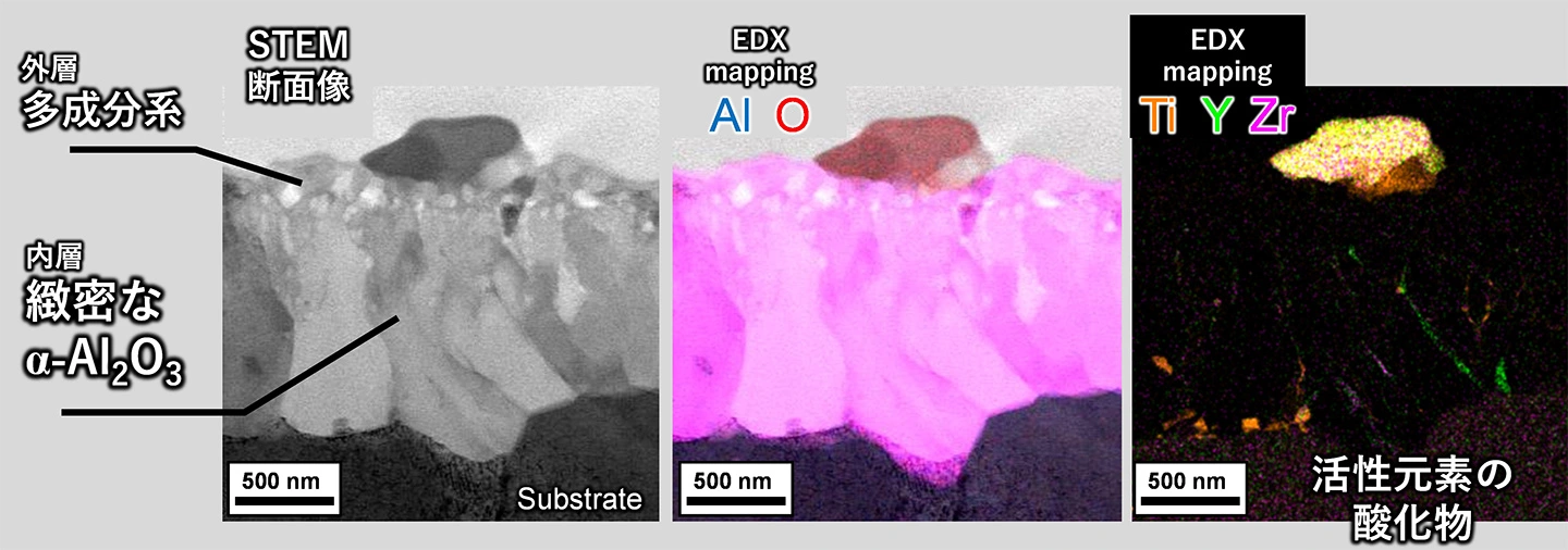 レーザーフュージョンエネルギー(核融合)の液体リチウム鉛合金(LiPb)ブランケットは、エネルギー変換システムとして高い信頼性と長期の寿命が期待されています。東京科学大学では、この液体LiPbブランケットの信頼性向上と長寿命化を目指し、先進構造材料である酸化物分散強化型(ODS)FeCrAl合金を対象にして、液体重金属環境下における化学的共存性の解明に取り組みました。北海道大学は、STEM/EDX等による先進構造材料の腐食組織のナノスケール評価や、材料が自己形成する表面保護膜の形態学的特性評価に関わる分析支援を行いました。これらの連携研究により、高温液体重金属流動下で構造材料の腐食進行を抑制しうる保護性酸化被膜の構造的健全性と機能特性を、世界に先駆けて明らかにしました。
