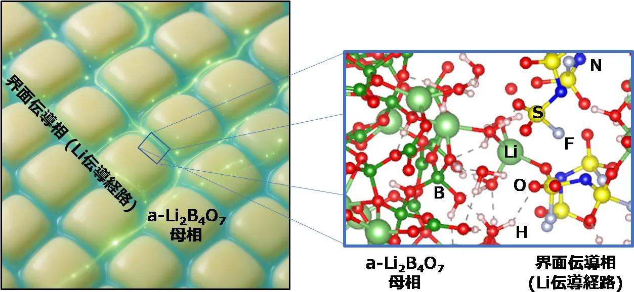 東京科学大学(Science Tokyo) 総合研究院 ゼロカーボンエネルギー研究所の白鳥洋介特任教授と安井伸太郎准教授らの研究チームは、水と非晶質四ホウ酸リチウムによるスライム化反応界面にリチウム塩Li(FSO2)2N(LiFSI)を介在させることで、リチウムイオン伝導経路が内部に3次元的に広がる準固体電解質(3D-SLISE[用語1])の合成に成功しました。3D-SLISEは、機械学習により見出されたやわらかい非晶質(amorphous)四ホウ酸リチウム(a-Li2B4O7)を母相として、セラミックス合成技術と分散塗布技術を駆使して、複合化という新しい視点を取り入れることで実現しました。作製した3D-SLISEを一般的な正極活物質LiCoO2および負極活物質Li4Ti5O12と組み合わせて準固体電池を作製し、その性能を評価したところ、室温3C[用語2]において400回を超える駆動を達成しました。