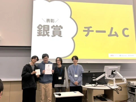 審査の結果、金賞・銀賞・銅賞が決定し、受賞チームの発表および表彰が行われました。本学の参加学生がメンバーとして所属するチームが銀賞を受賞しました。