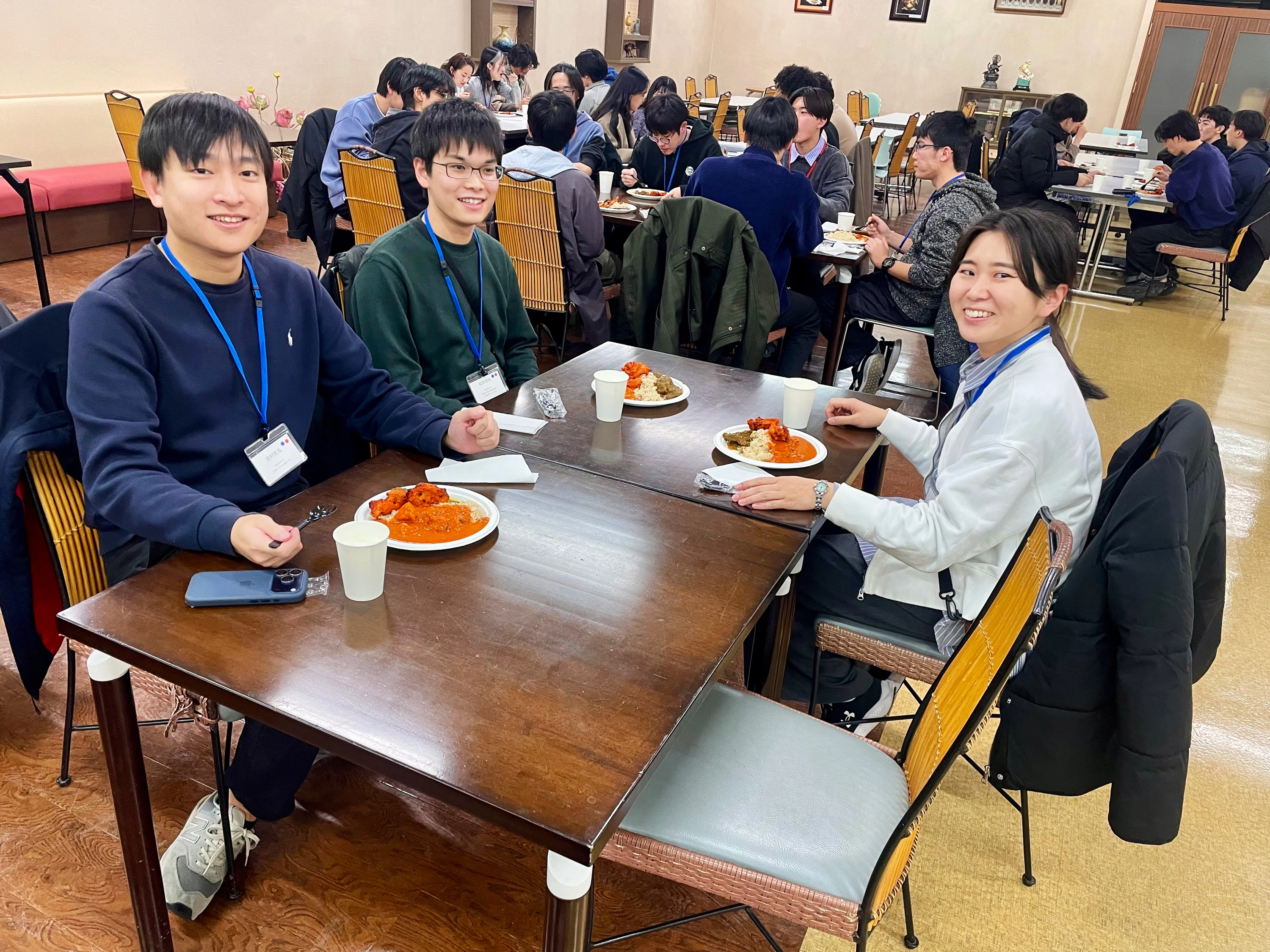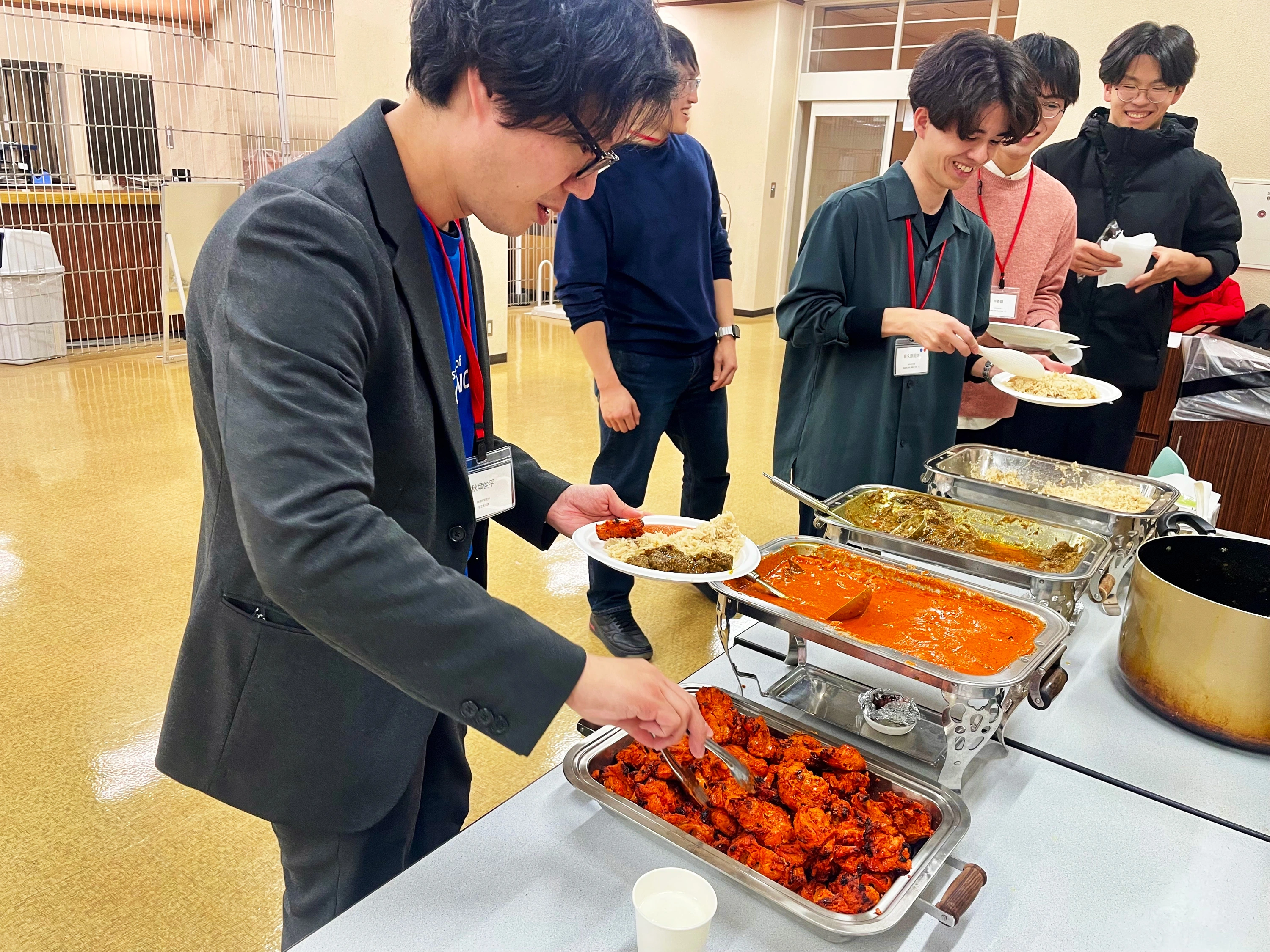 初日の夜には交流会を実施し、カレービュッフェを囲みながら大学や学年を越えた交流が活発に行われました。会場には笑顔があふれ、参加者同士の距離が一気に縮まる様子が見られました。