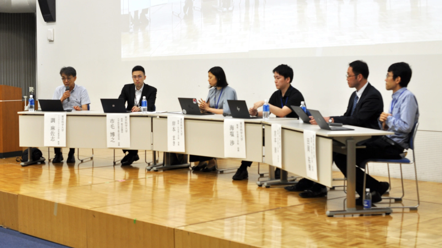次世代研究者によるパネルディスカッション(左から、モデレーターの調麻佐志教授(リベラルアーツ研究教育院)、市毛博之助教(東京科学大学病院総合診療科)、岸本まき助教(環境・社会理工学院)、海塩渉助教(同)、宮本崇准教授(同)、田岡祐樹助教(同))
