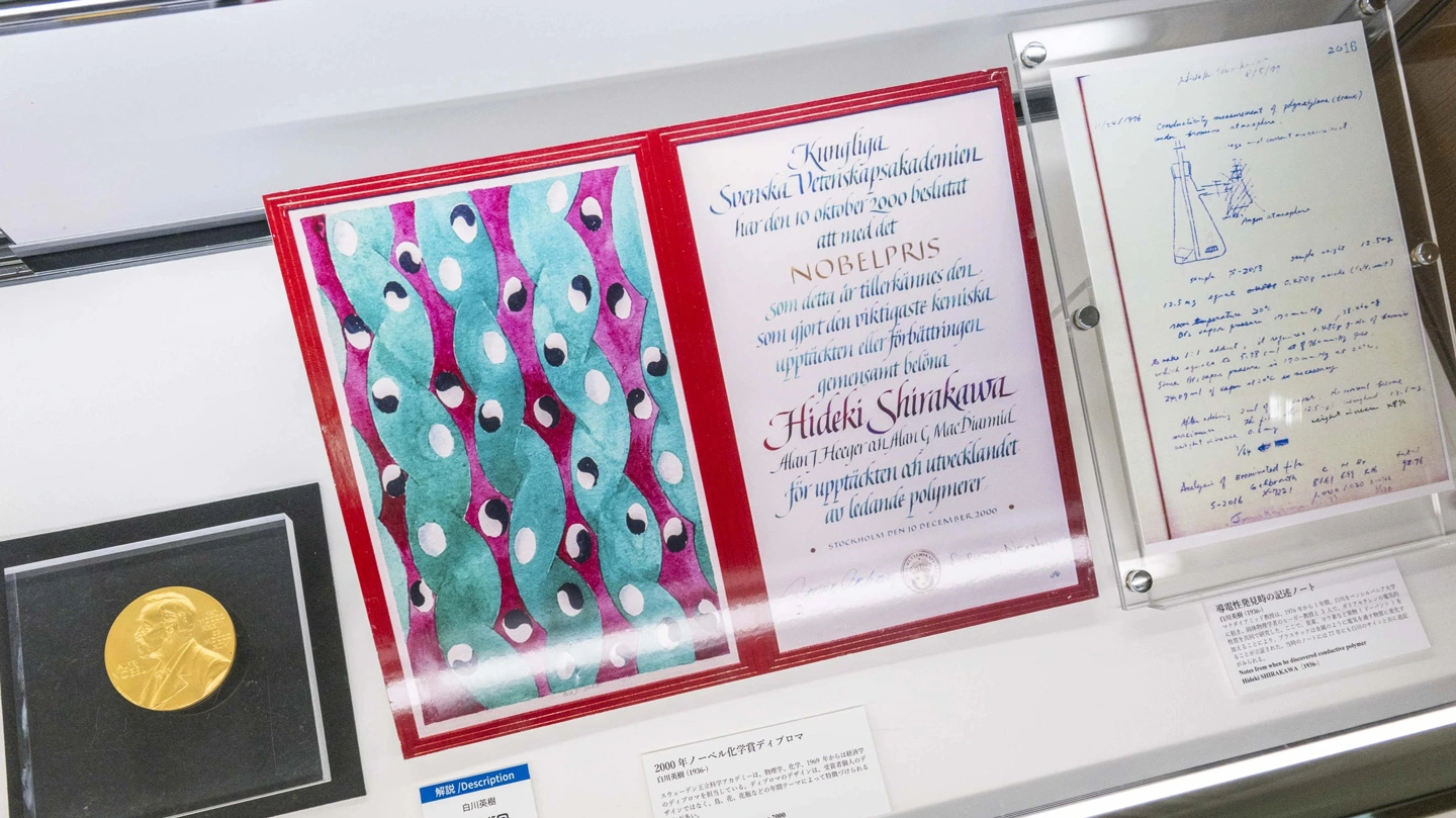 M&Dタワー2階の鈴木章夫記念講堂前ホワイエにて開催した特別展示企画では、本学御茶ノ水図書館所蔵の「解体新書」(レプリカ)、本学歯学博物館所蔵のお歯黒道具一式、東京科学大学博物館所蔵のノーベル賞メダル&ディプロマ(レプリカ)等を展示しました。
