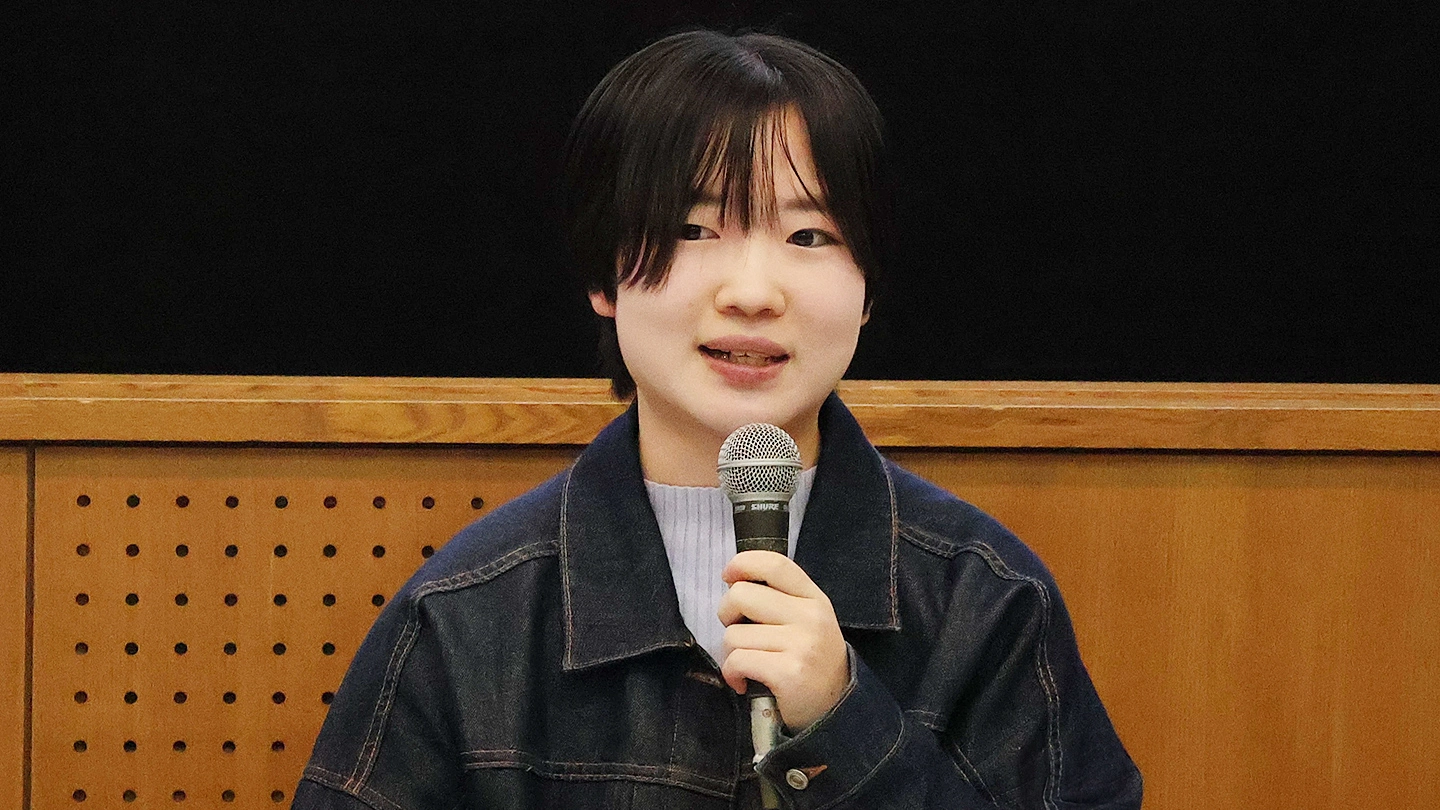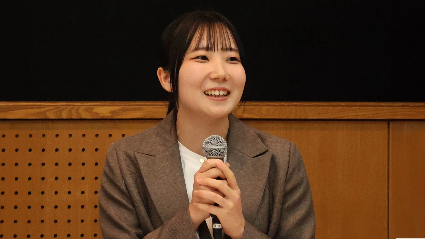 進路選択の背景には直感的な憧れや身近な興味があったこと、大学生活では研究・留学・課外活動などさまざまな挑戦をしていることが紹介されました。将来についても研究・開発職や文系就職など幅広い選択肢が語られ、理工学系の学びが個々の可能性を広げることをイメージしてもらう一助となりました。中高生・高専生への力強いメッセージとともに、進路を考える皆さんに温かいエールをおくりました。