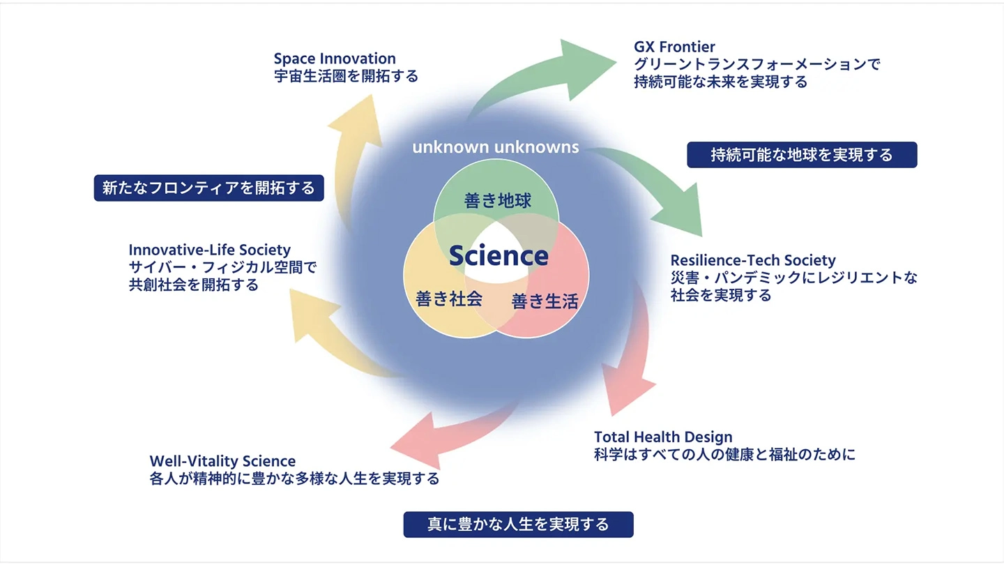 第1部では、波多野睦子理事・副学長(研究・産学官連携担当)が基調講演を行いました。はじめに、Science Tokyoが掲げる「VI:ビジョナリーイニシアティブ」について紹介し、「善き生活」「善き社会」「善き地球」を実現するため、分野が高度に融合した研究・教育を進めていくことを語りました。「今、私たちの未来に関わる6つのVIを構想し、世界中の研究者や産業界の方々とも協力して進めていこうとしています。ぜひScience Tokyoに加わっていただき、ありたい未来をともに創りましょう」と呼びかけました。