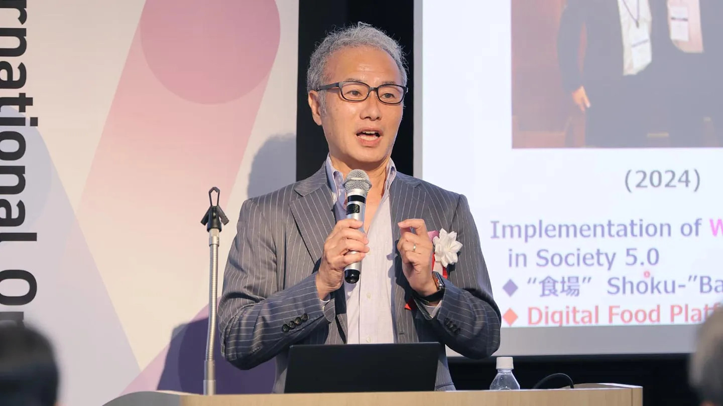 そして、環境・社会理工学院教授の木村英一郎が「デジタル・フード・プラットフォーム構想」と題し、「食」と「健康」の新価値創造と産学官のエコシステム・ビルディングによるDigital Food Platform (DFP)構想について紹介するとともに、スマート農業と個人のウェルビーイングをつなげる新ビジネスモデルについても言及しました。