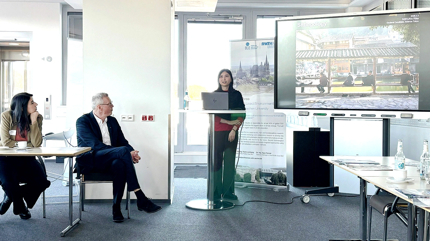 Science Tokyo環境・社会理工学院から、村田涼准教授、能作文徳准教授、淺輪貴史准教授、大森文彦准教授、博士後期課程の新倉梨加さんが参加しました。アーヘン工科大学の分野横断型研究組織であるプロファイルエリア「Built and Lived Environment (BLE)」の研究者と共に、レジリエントな地域や社会、生物由来の持続可能な建築資材を活用した建設、人間中心でサステナブルな住宅、居住環境の気候適応など、建築分野を幅広く網羅したプレゼンテーションと議論を行いました。