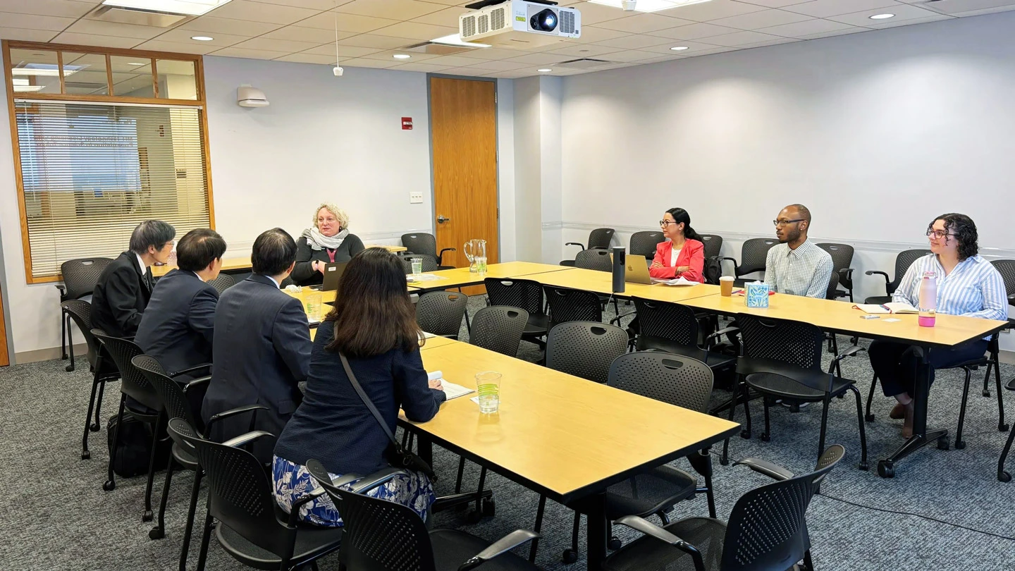 訪問当日は、MITの複数の関係者との間で実りある意見交換が行われました。大竹理事長のほか、井上光太郎理事(財務担当)、古川哲史執行役副理事(総合戦略担当)・執行役副学長(研究・産学官連携担当)、伊藤紀子理事特別補佐(総合戦略担当)は、MITのアナンタ・P・チャンドラカサン戦略・イノベーション担当責任者・工学部長(2025年7月1日付でMITのプロボストに就任)と面会し、MITにおける各種イニシアティブの資金調達のあり方や、将来的な共同イニシアティブをいかに支援していくかについて協議を行いました。大竹理事長からScience Tokyoの新たなビジョンに基づく教育・研究の進め方について説明があったのに対し、チャンドラカサン教授からは、MITにおける学びの環境に関する近年の変化が紹介されました。
